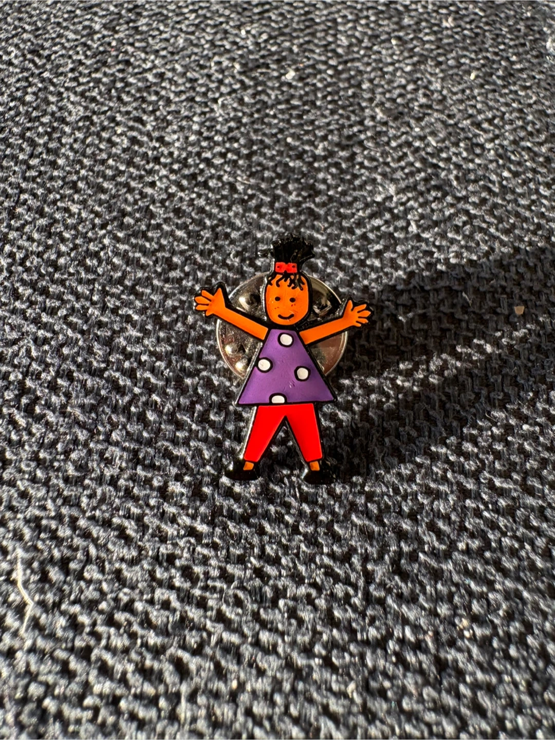 Pin in the shape of a girl. Butterfly clasp. It’s about the length of a quarter. Pickup near Sherbourne and Adelaide St East or sometimes at some TTC stations. Thanks