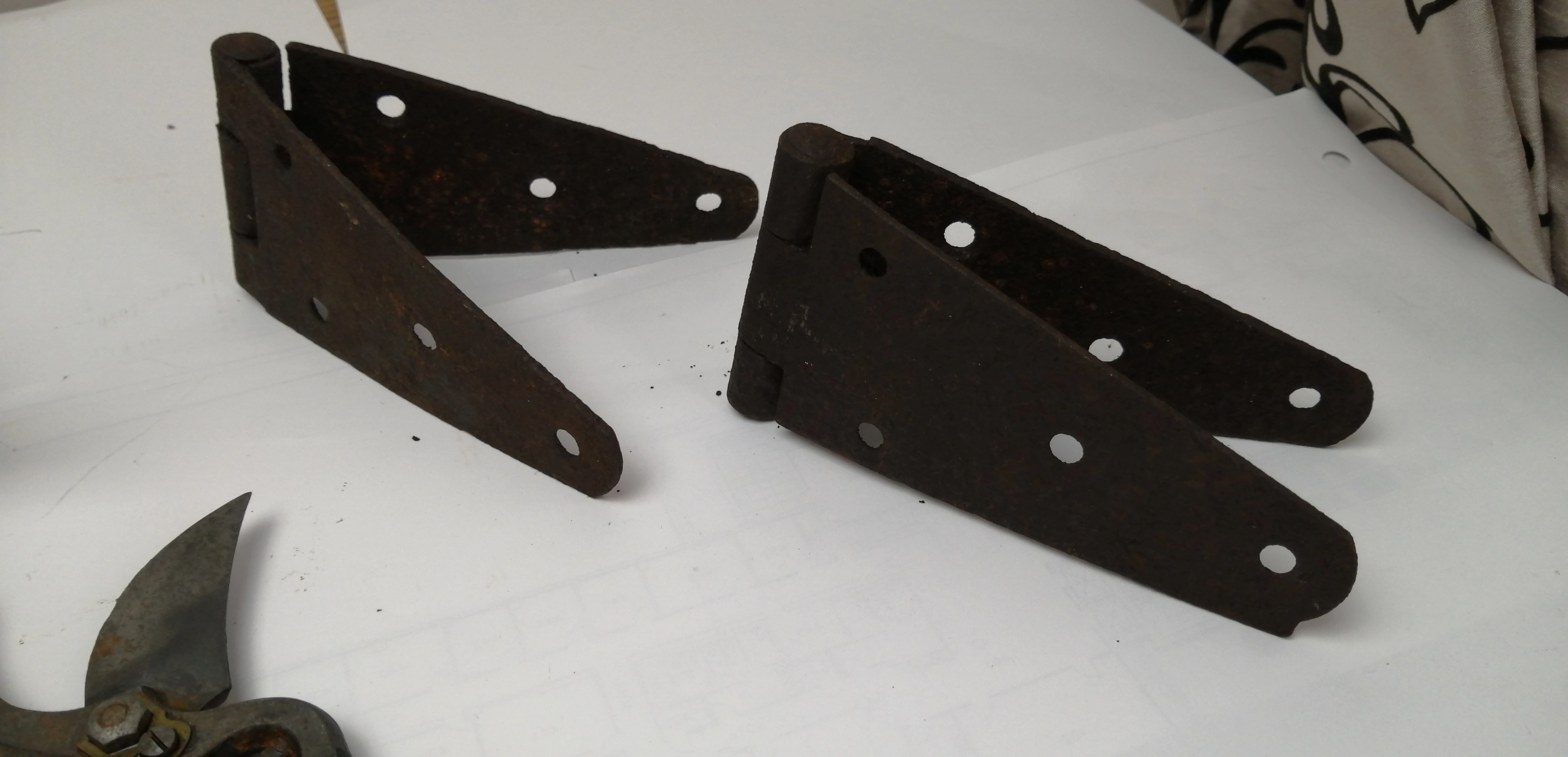 Two heavy duty hinges need some oil to work smoother, little rusty, 5" long on each side.