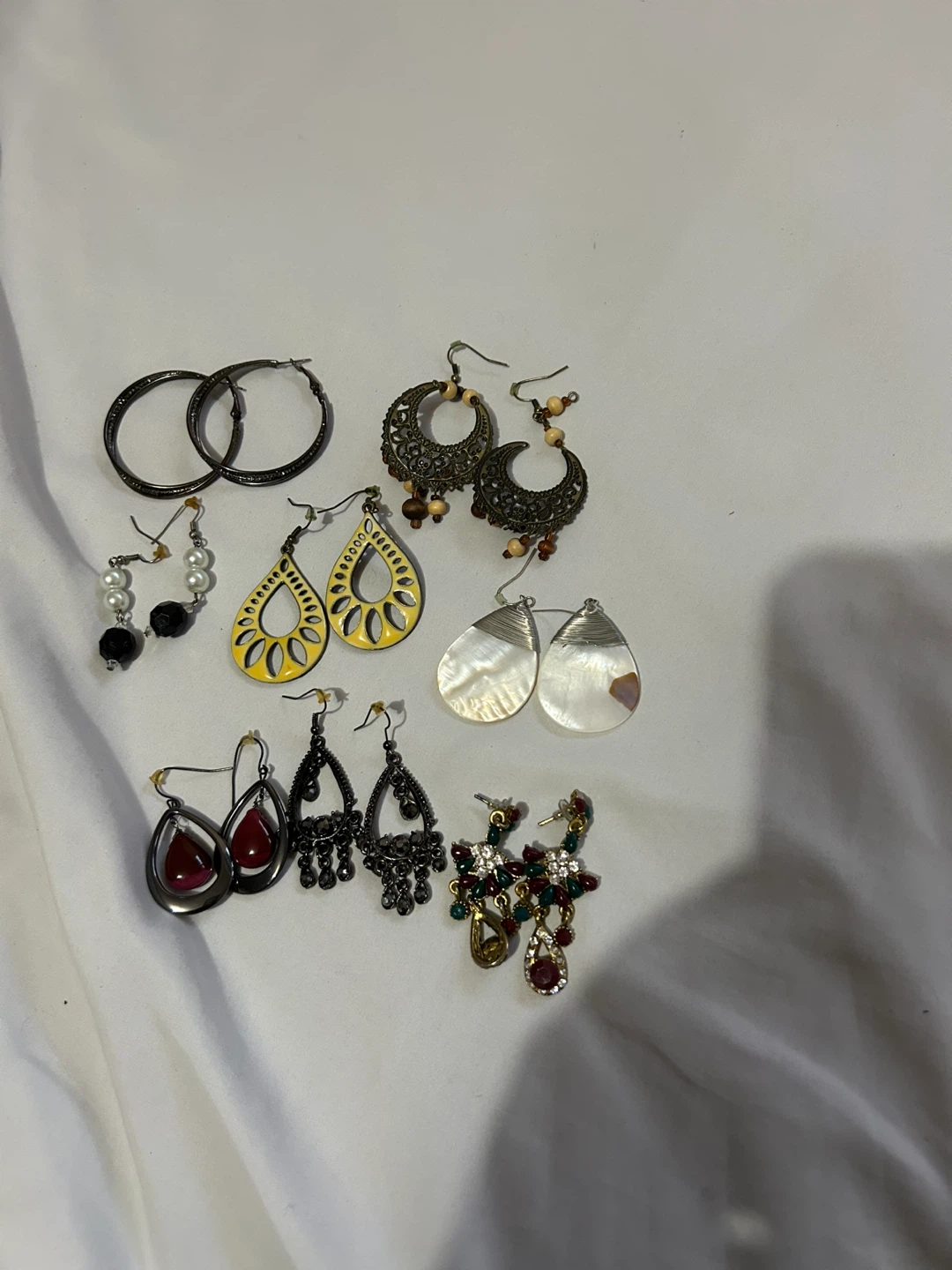 A collection of assorted earrings, perfect for adding a little something to your outfit! Different styles and colours available.