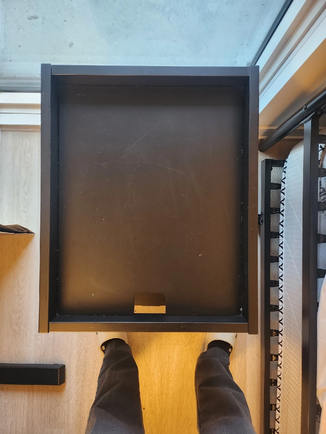 can store wires in back of drawer