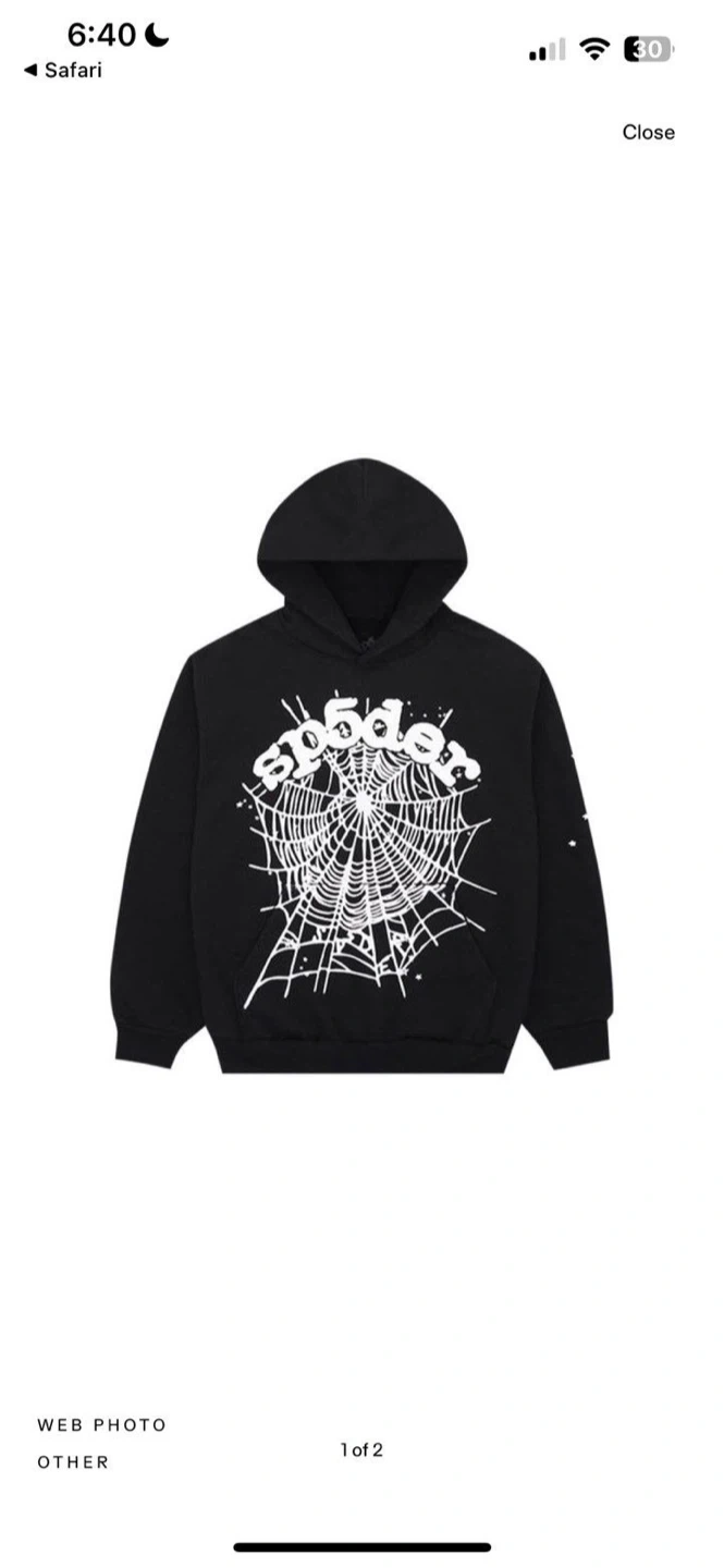 29Selling a black Sp5der hoodie with a white spiderweb design! It's in great condition and ready for a new home