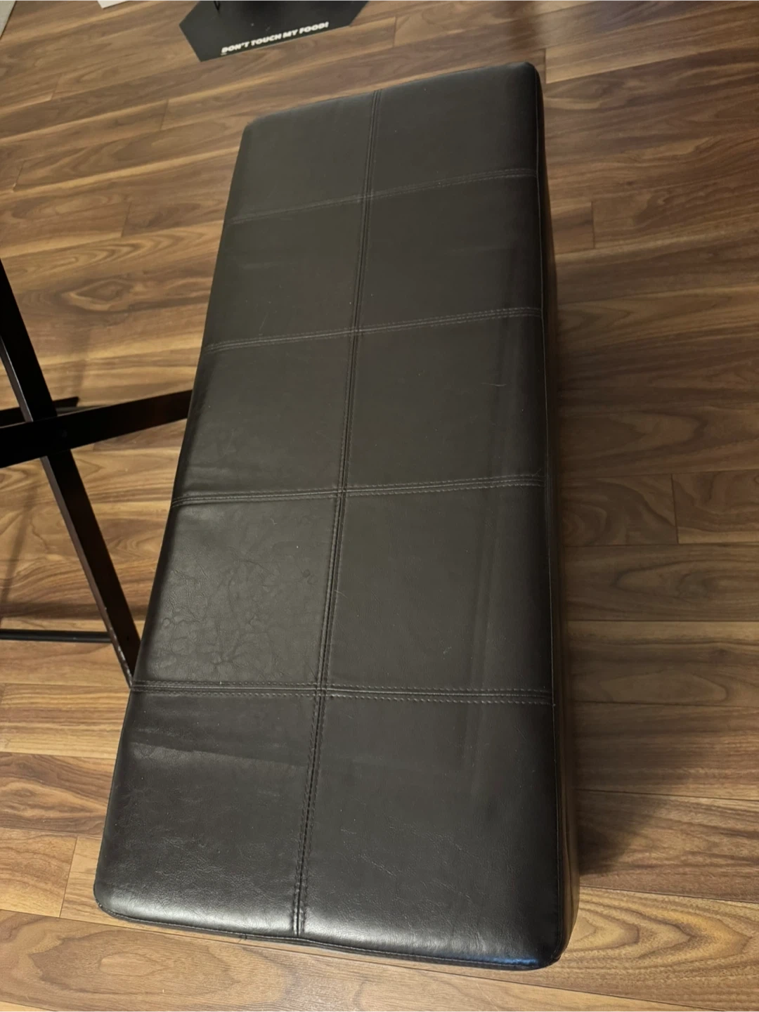 Smoke-free home, faux-leather, sturdy and great for extra seating.