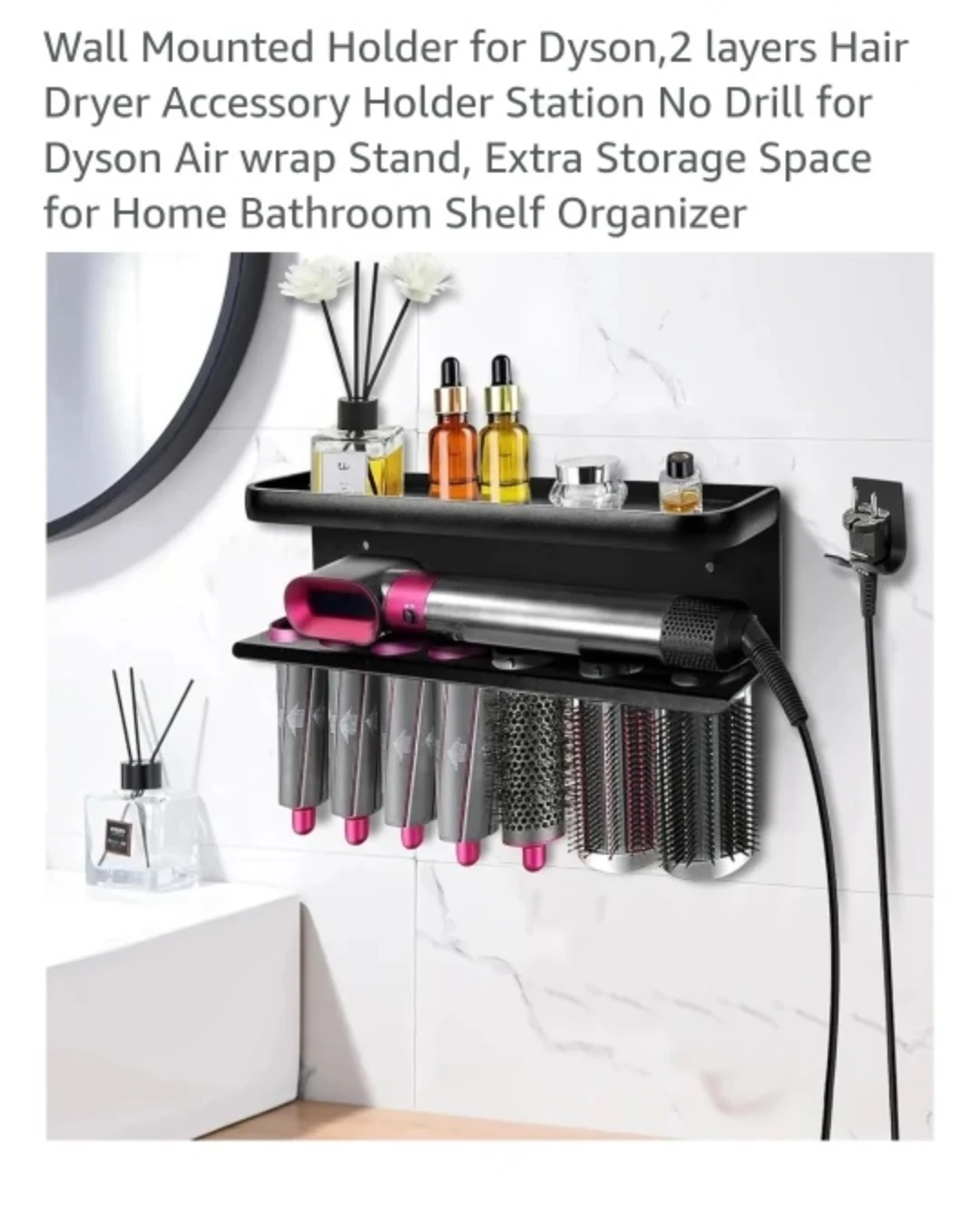 Keep your Dyson Airwrap and accessories neatly organized with this wall-mounted holder! It features a 2-layer design with extra storage space, perfect for your home bathroom shelf. This holder is designed for the Dyson Airwrap styler and other hairdressing supplies. BRAND NEW NEVER USED.