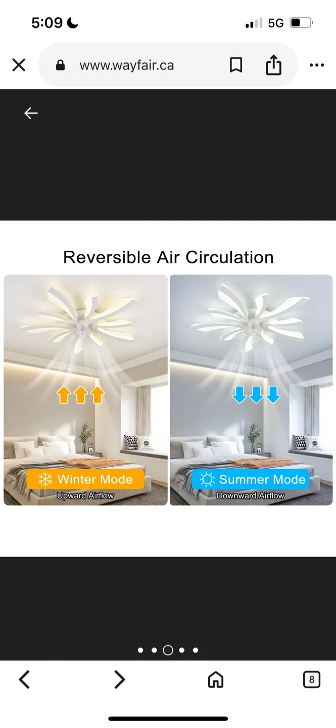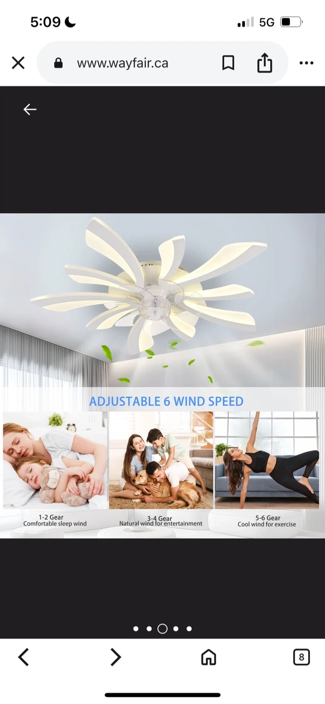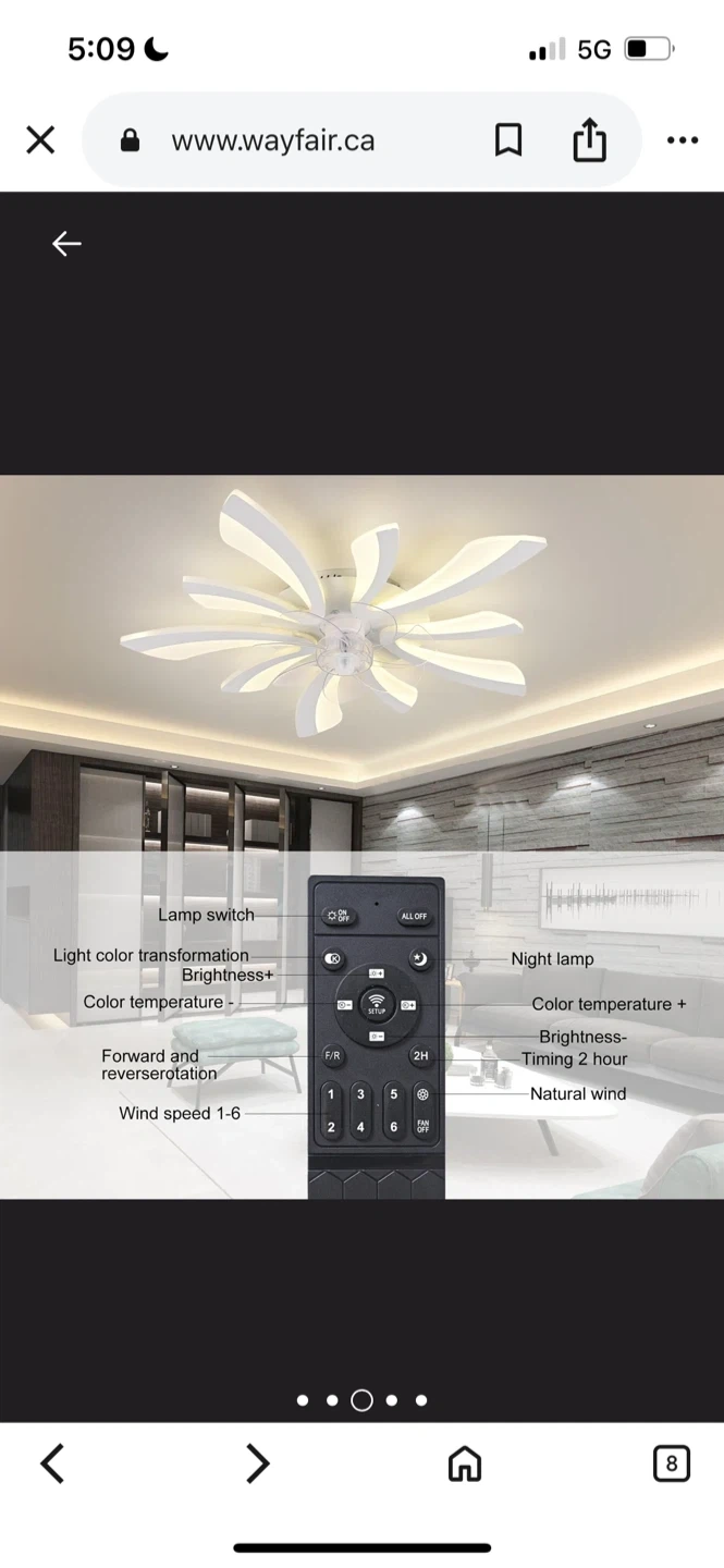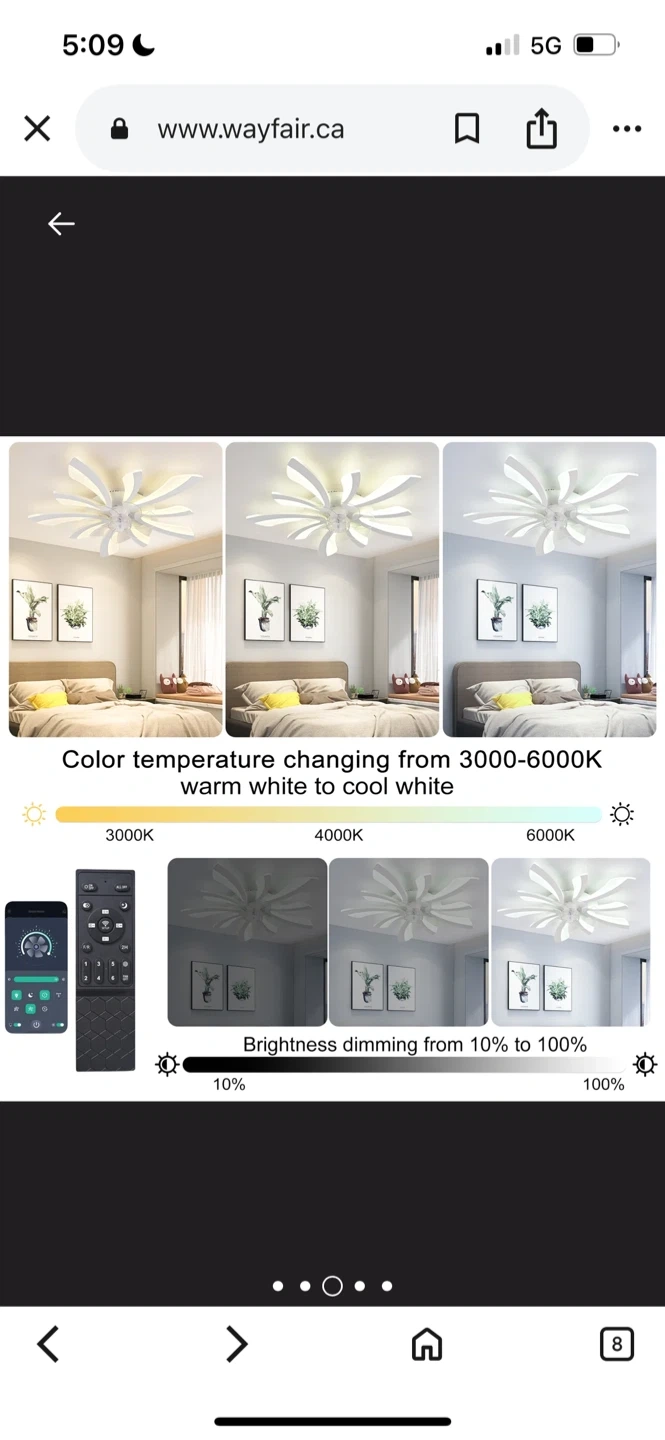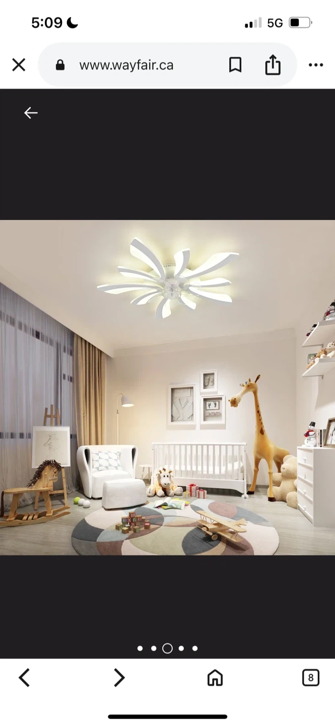 137Wayfare Price $187.99 Selling a modern LED ceiling fan with a unique flower design! It's white and comes with a remote control. The blades are made of durable and silent ABS material. It also features advanced LED chips that are long-lasting and eye-friendly. Dimensions are 70cm (27.55in) in width and length, and 12cm (4.72in) in height