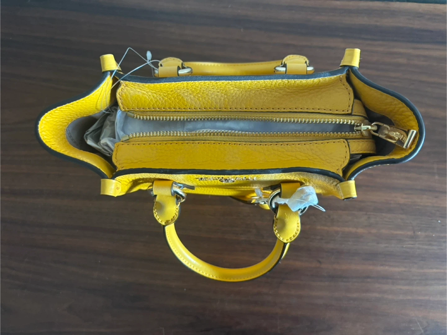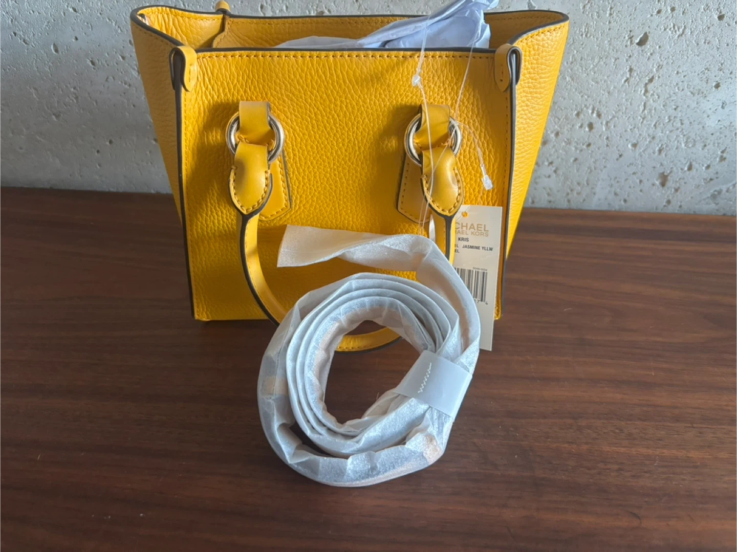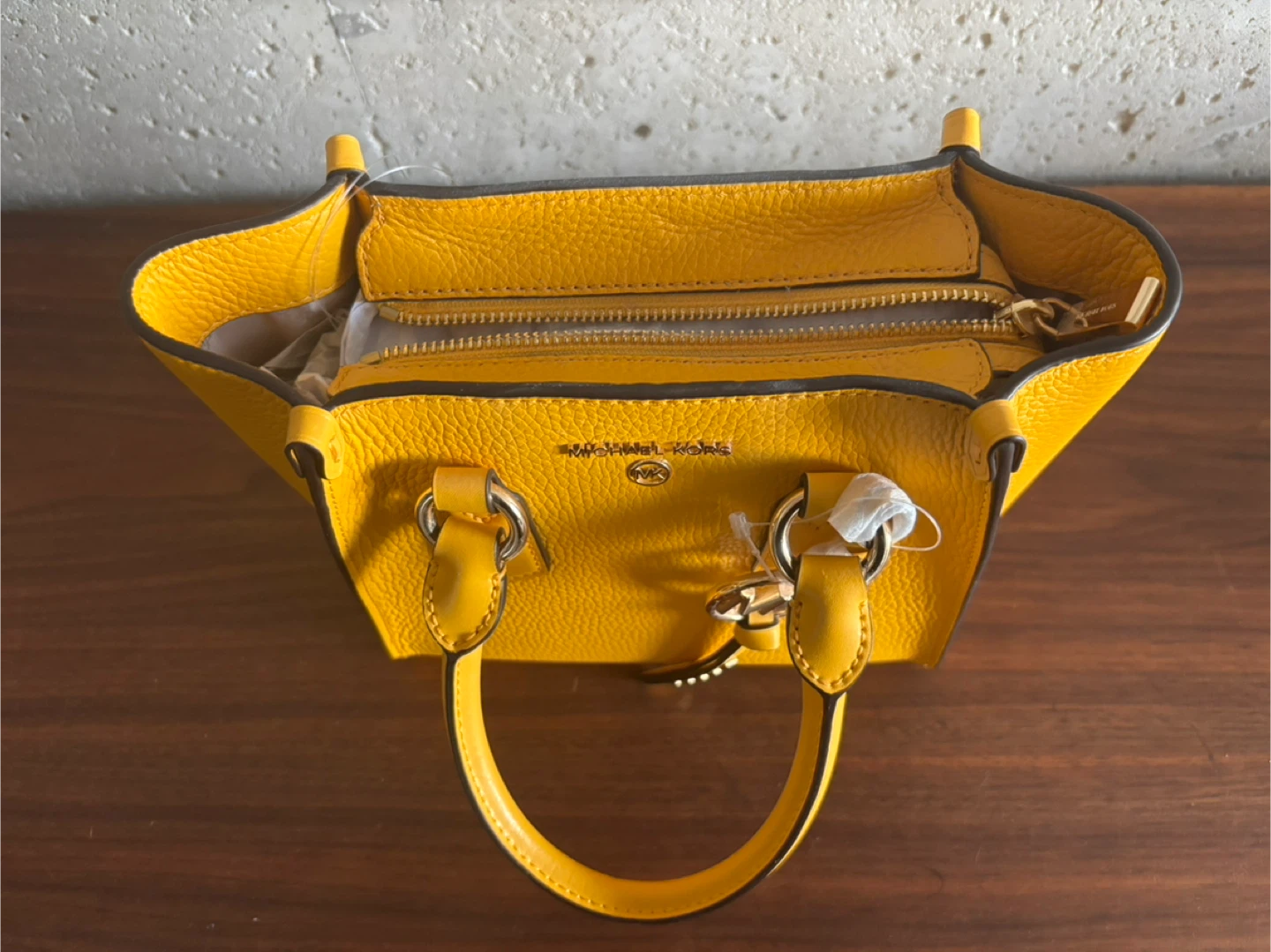Michael Kors Kris pebbled leather small bag in yellow with crossbody strap. Unused with tags and wrapping.