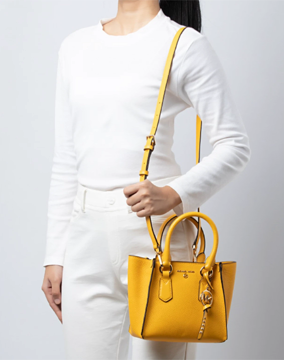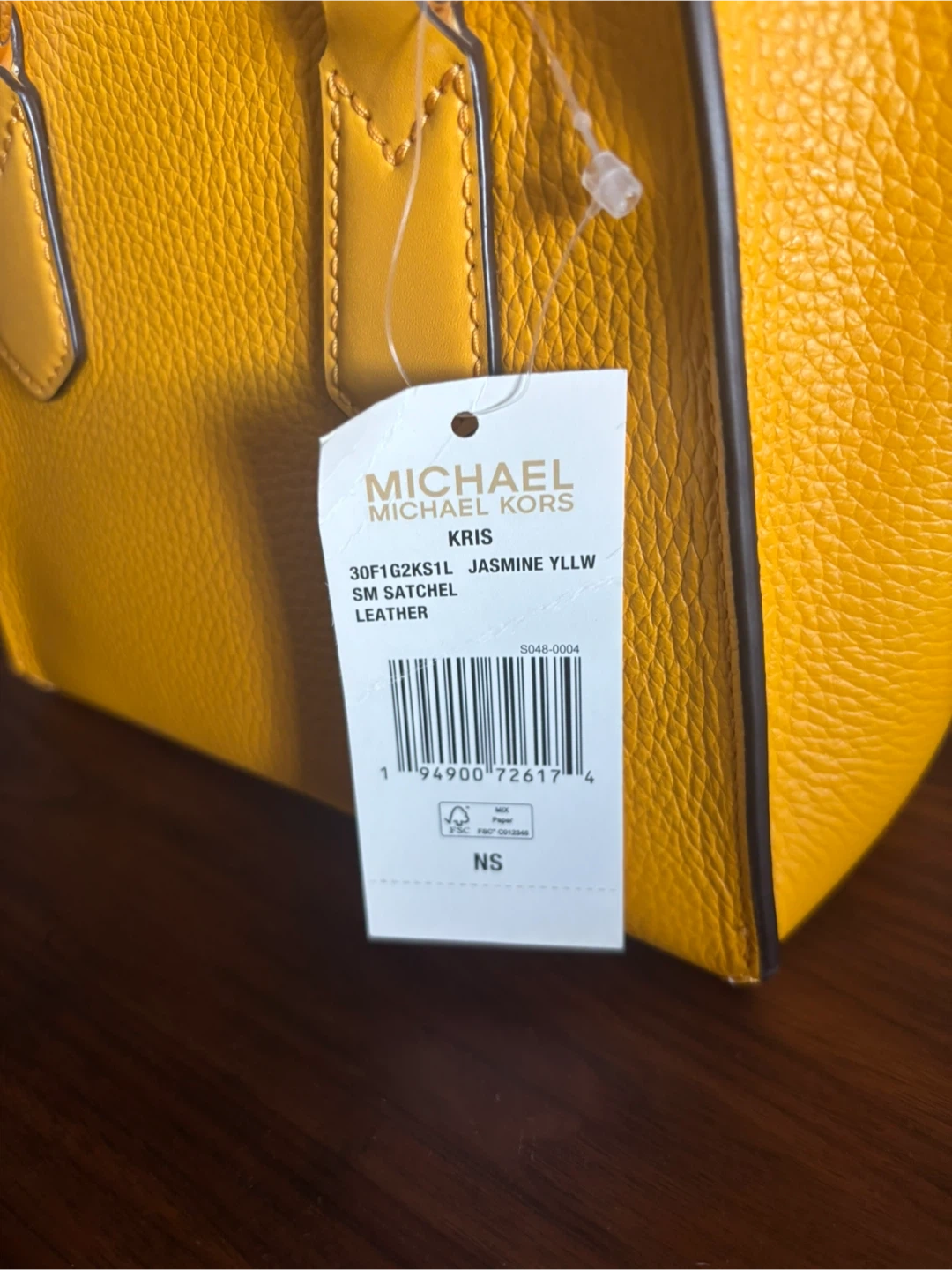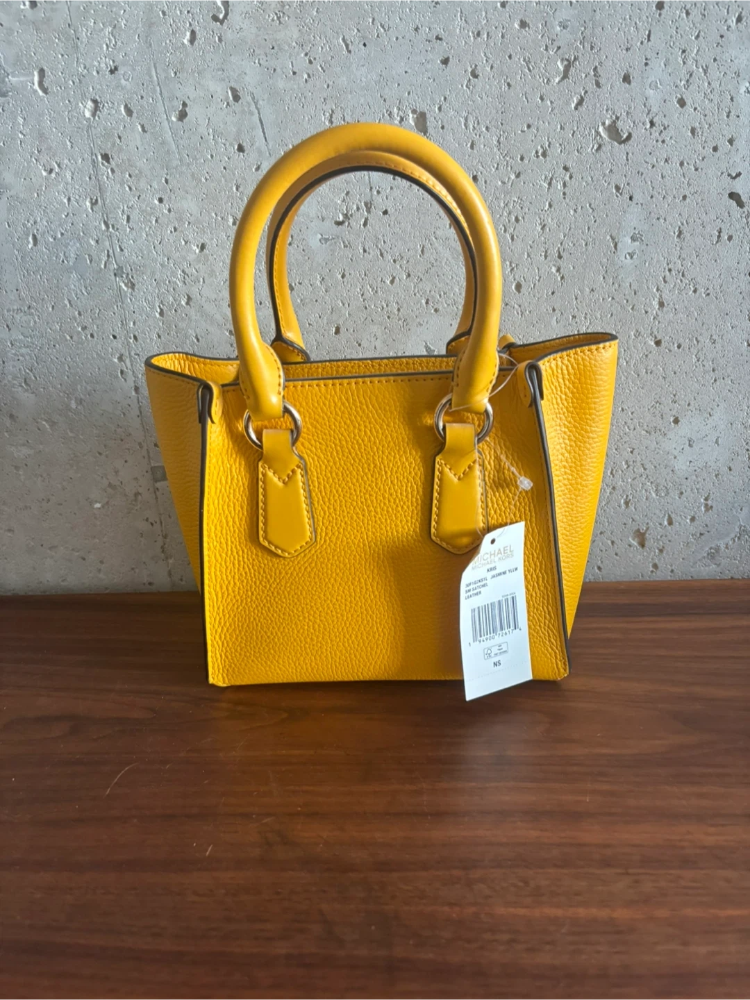 Michael Kors Kris pebbled leather small bag in yellow with crossbody strap. Unused with tags and wrapping.