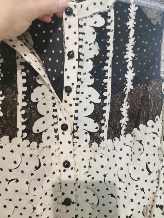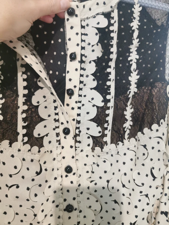 Selling a lovely Bezaile Byron Lars dress! It's a size 10 and made of 100% polyester. The dress features a unique design with black and cream colours.