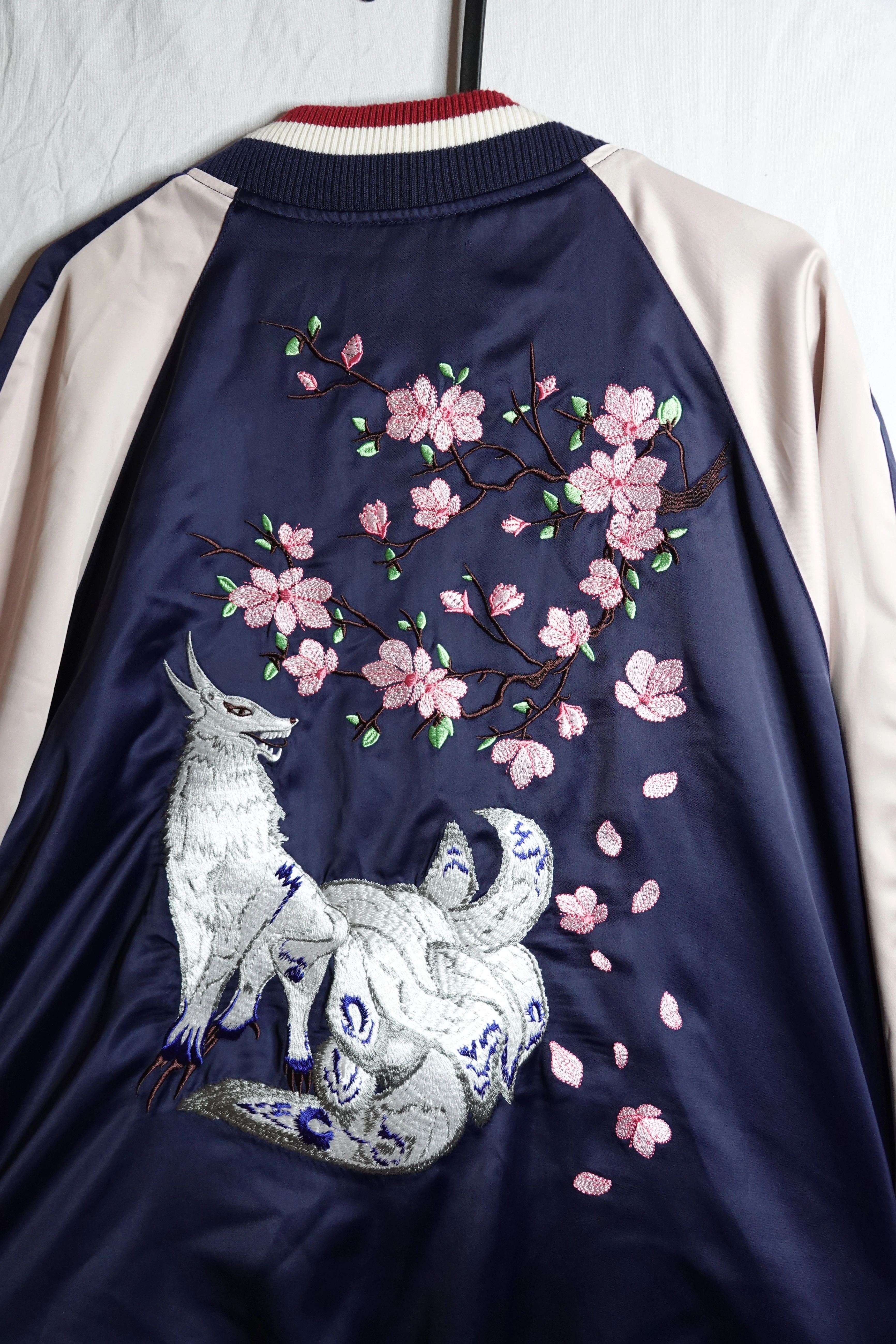 Embroidered Bomber Jacket – Blue & Ivory, Cherry Blossom & Fox