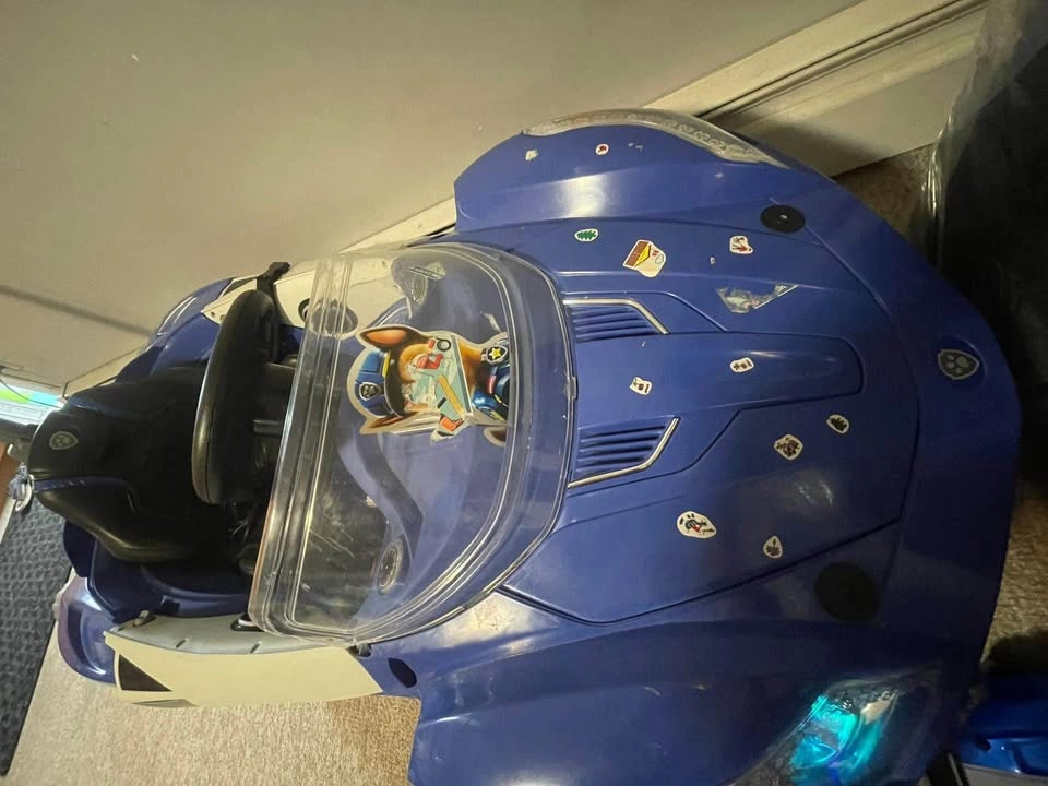 Fun electric car for kids! Works perfectly — lights, sounds, and movement are all good. Only issue: the battery is weak, so it may need charging more often or replacing soon. Comes with seatbelt, steering wheel, and stickers already on.
