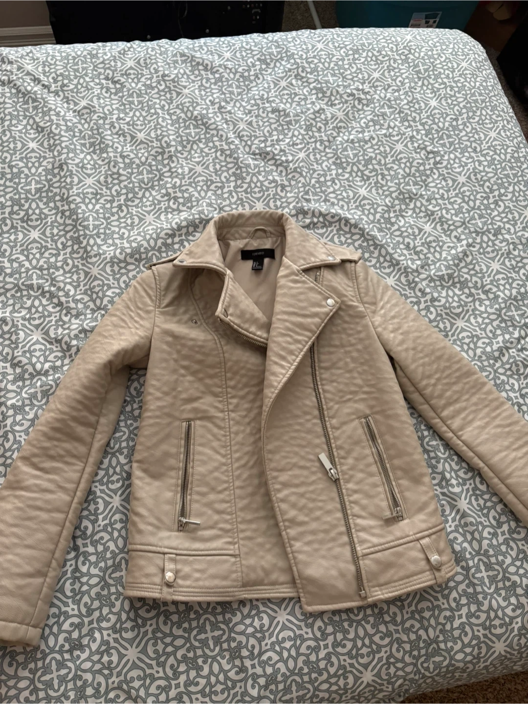 Buy & SellForever 21 Beige Moto Jacket - Size SForever 21 Beige Moto Jacket - Size S$9Selling a Forever 21 moto jacket in a lovely beige colour! It's a size small and in great condition. Perfect for adding a bit of edge to any outfitConditionLike newBrandForever 21WHERE TO MEETCheck LocationView MapSELLERverifiedShielaRosenthal700 reviews0 chats·0 favorites·9 views