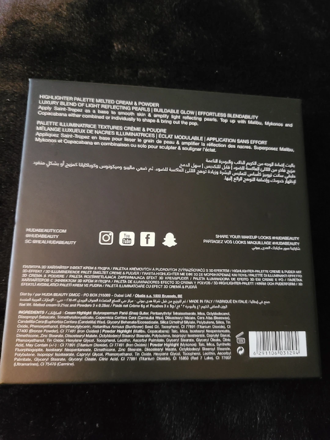 175Huda Beauty Summer Highlighter Palette! This palette features a blend of light reflecting oils and powders for a buildable glow and effortless blendability. The shades are perfect for highlighting and adding a touch of shimmer to your look. Includes the shades Saint-Tropez, Malibu, Copacabana, and Mykonos.