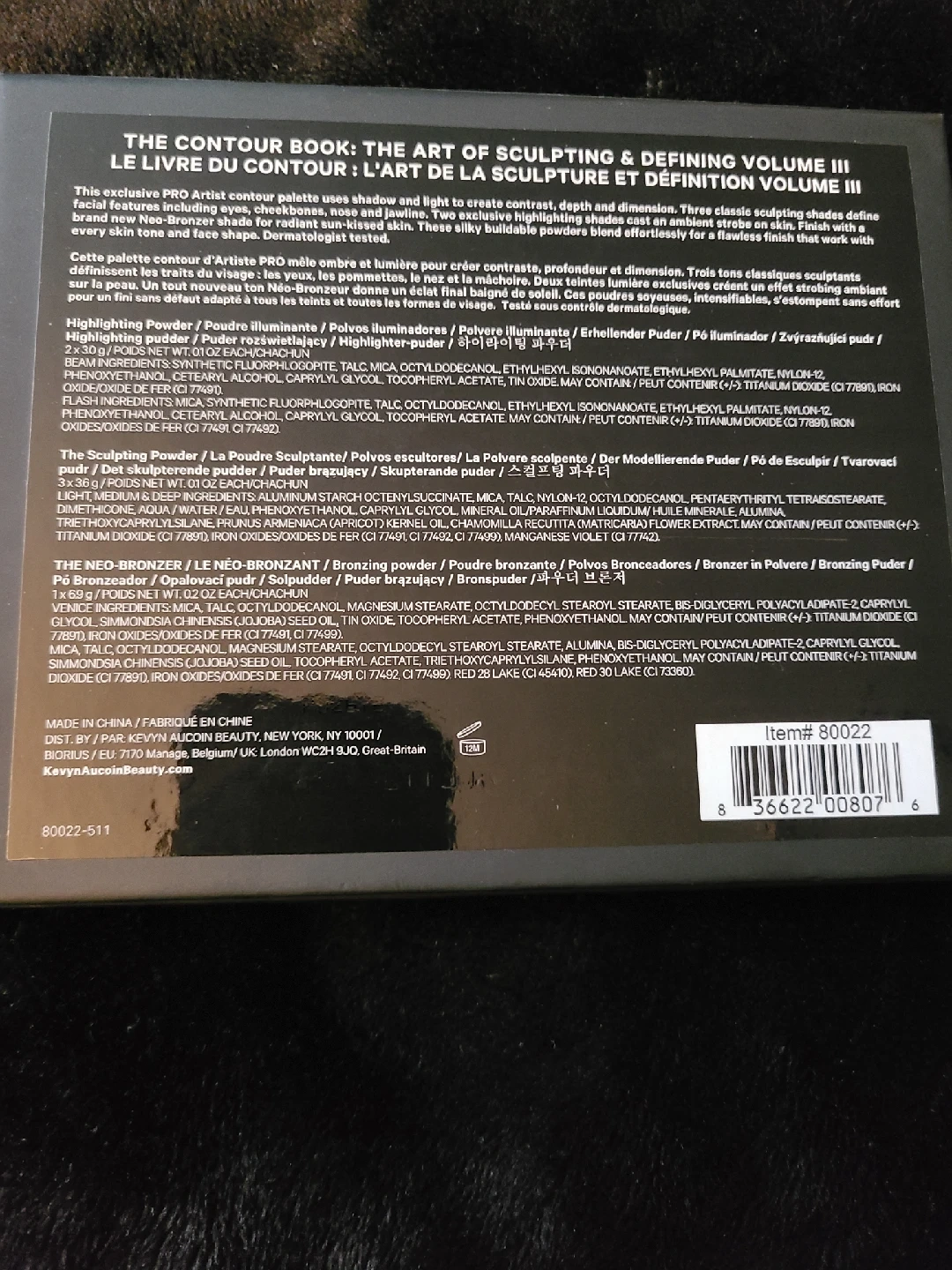 242Kevyn Aucoin contour palette, "The Contour Book: The Art of Sculpting & Defining Volume III"! This palette features a range of highlighting and sculpting powders to create dimension and definition. Includes shades like Flash, Beam, Venice, and sculpting shades. It's perfect for achieving a flawless finish.
