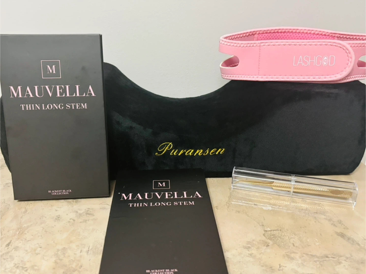 17Mauvella Lashes Puransen lash pillow Lashgod tweezer Lashgod headband Lash cart