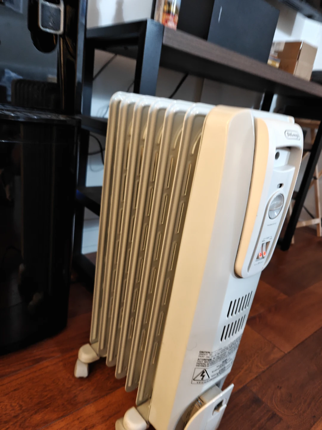 Selling a DeLonghi oil-filled radiator heater. It's in great shape and ready to keep you warm this winter. It has a thermostat for easy temperature control