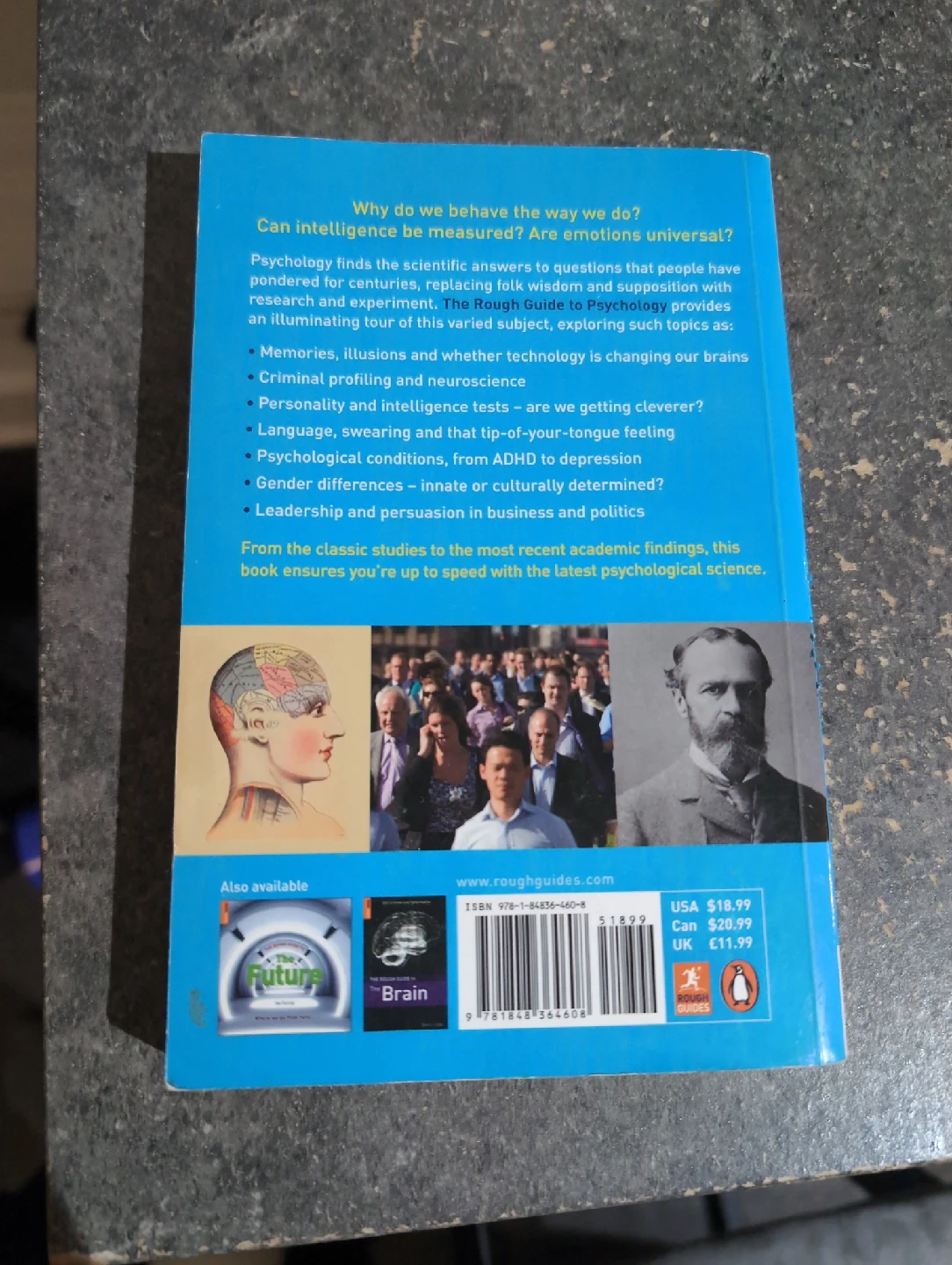 Selling 'The Rough Guide to Psychology' by Dr Christian Jarrett! This book provides an illuminating tour of varied subjects, exploring topics such as memories, illusions, and whether technology is changing our brains. It also covers personality and intelligence tests, language, psychological conditions, gender differences, and leadership in business
