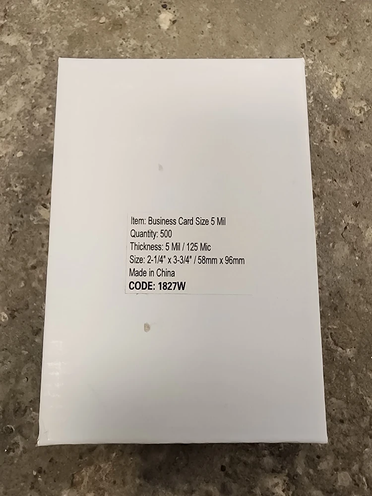 Selling a box of business card lamination pouches, size 5 mil. There are 500 cards in the box.
