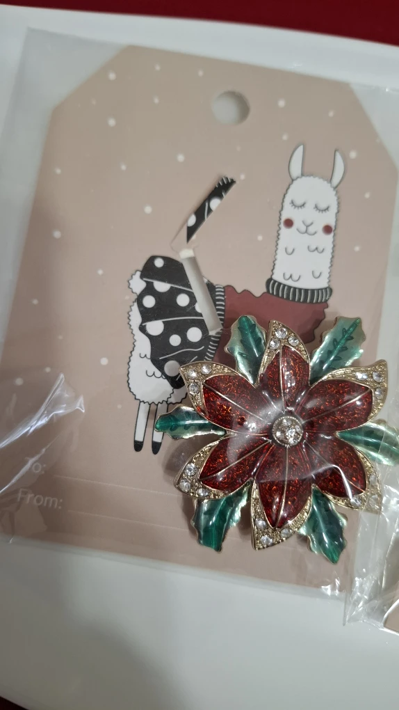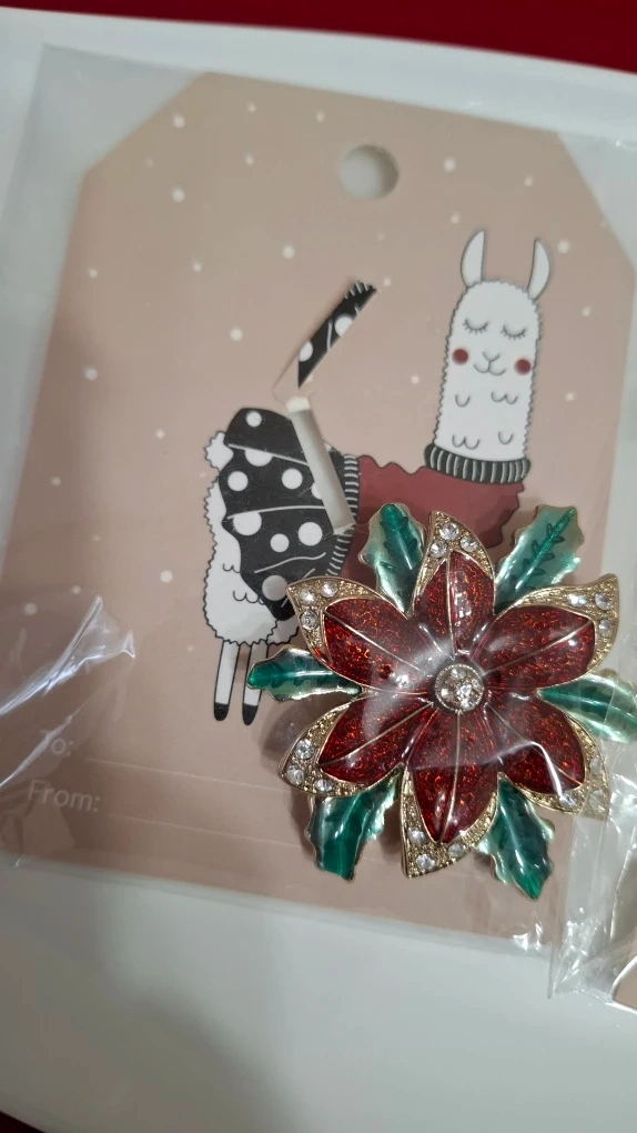 Selling a brand new poinsettia brooch, still in its original packaging! It's a beautiful red and green with sparkly accents, perfect for adding a festive touch to any outfit. Nickel-free.