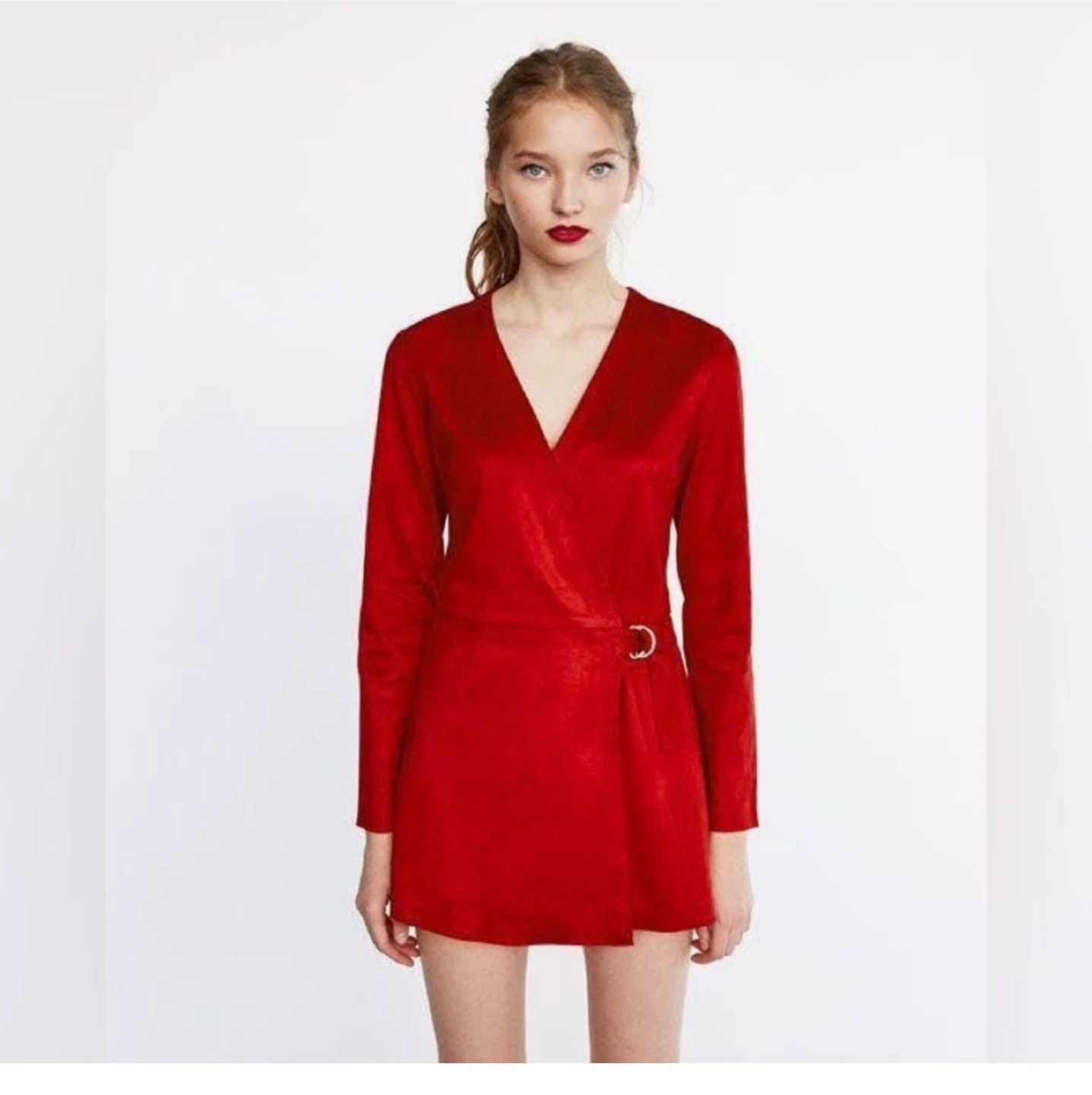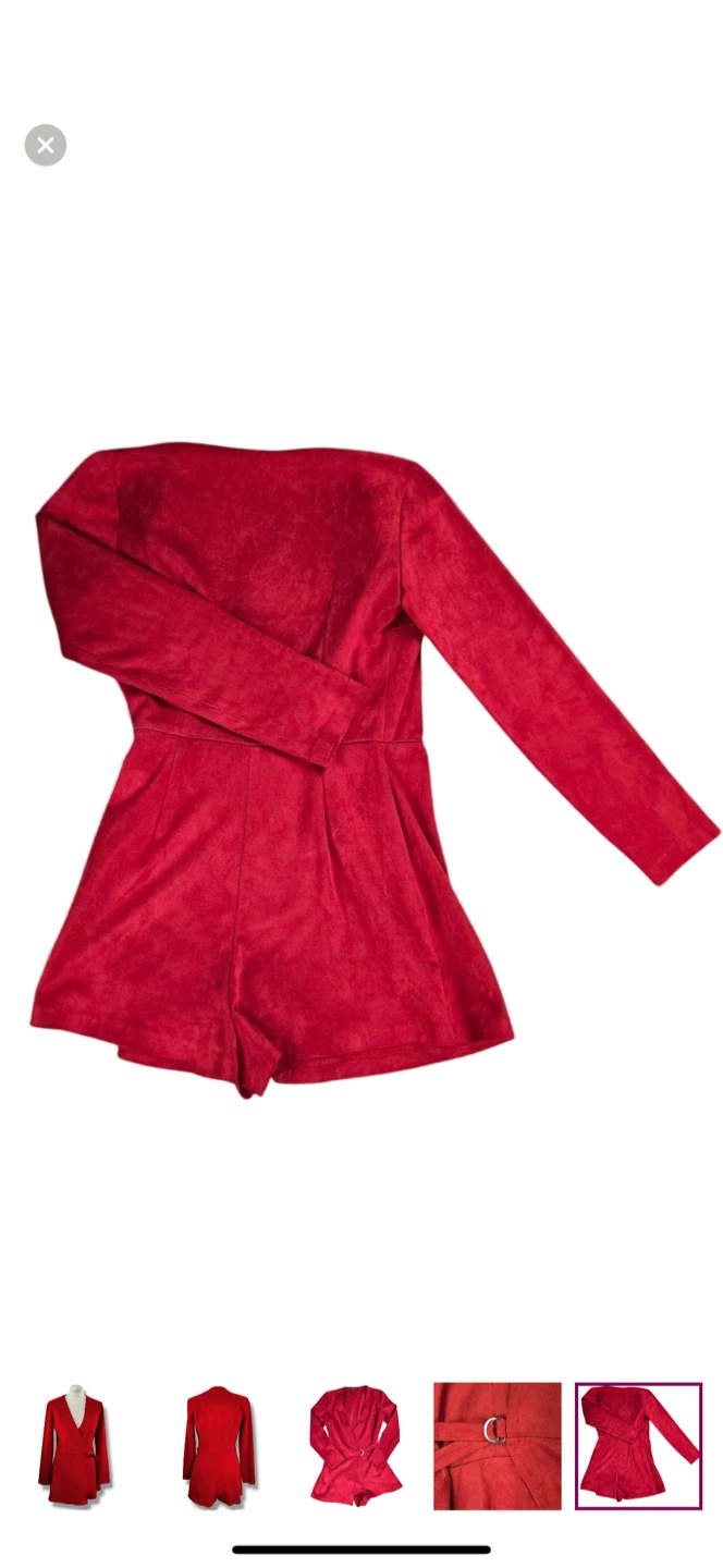 Zara Trafaluc Red Faux Suede Deep V Neck Romper