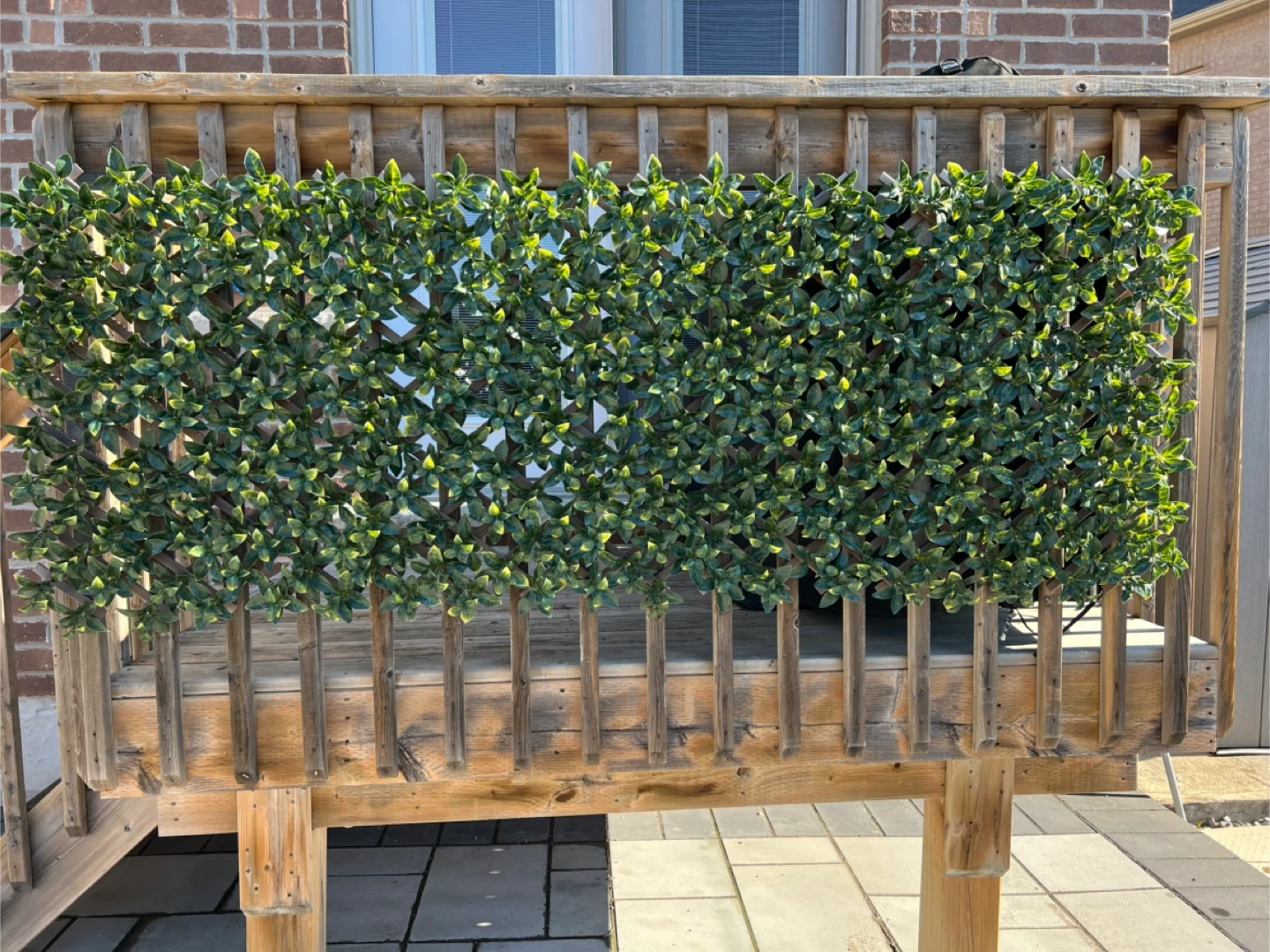 108Enhance your outdoor space with this expandable privacy fence screen, designed to add both beauty and functionality to your deck or garden area. It's in excellent condition, ready to provide instant privacy and a touch of greenery wherever you need it. Specifications: * Type: Expandable Fence Screen * Condition: excellent condition (like new) * Material: Faux greenery on a willow frame