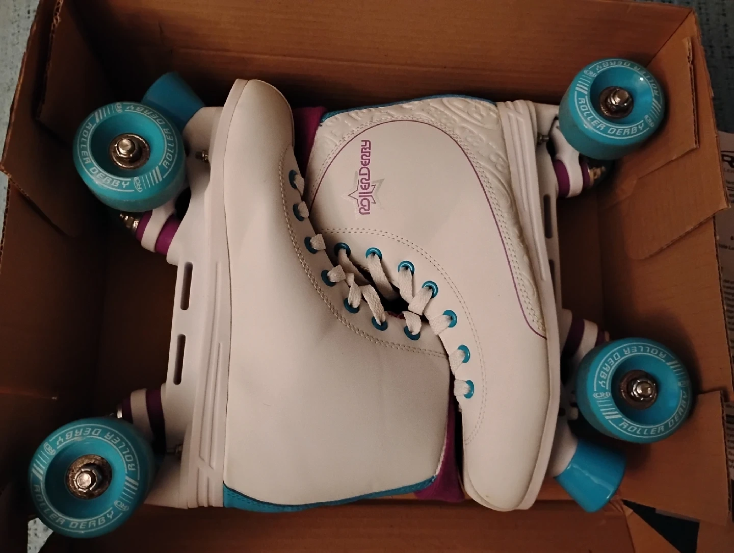 ROLLER DERBY ROLLER STAR 600 QUAD SKATES, WOMEN'S SIZE 8. HAVE BEEN USED ONLY TWO OR THREE TIMES, SEE PHOTOS. IN LIKE NEW CONDITION! COMES IN ORIGINAL BOX.
