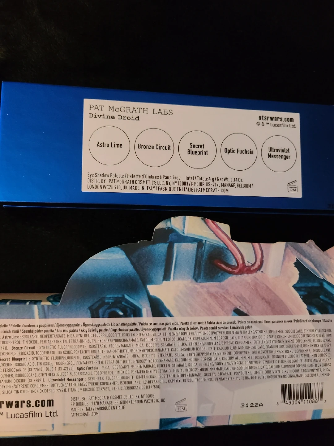 242Pat McGrath Labs Star Wars Divine Droid eyeshadow palette! The palette features a range of colours including Astro Lime, Bronze Circuit, Secret Blueprint, Optic Fuchsia and Ultraviolet Messenger.