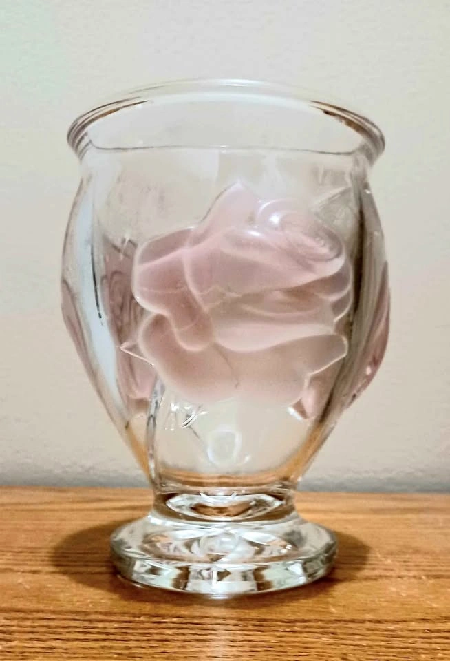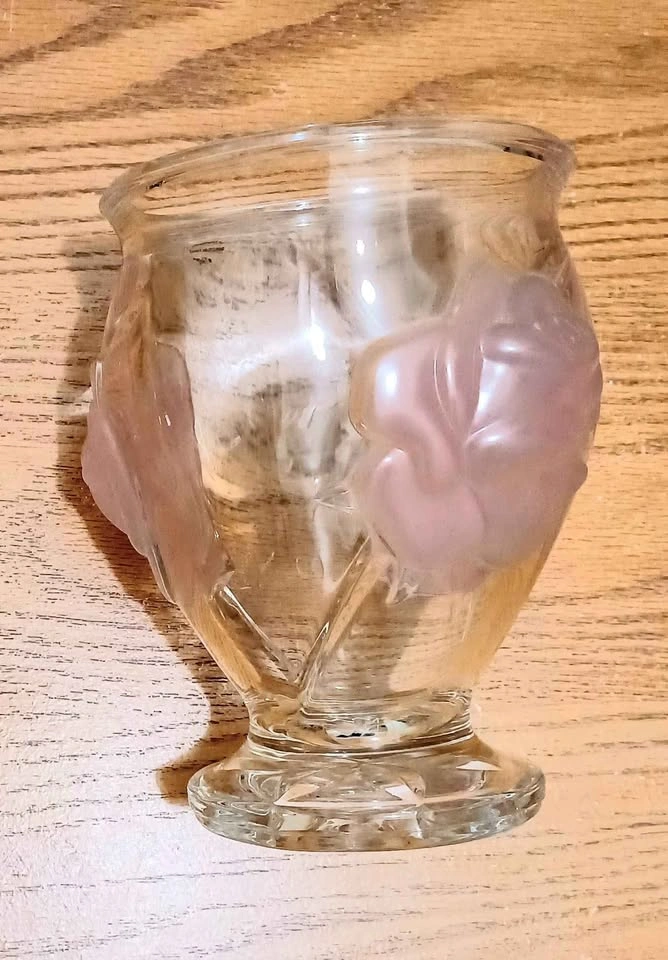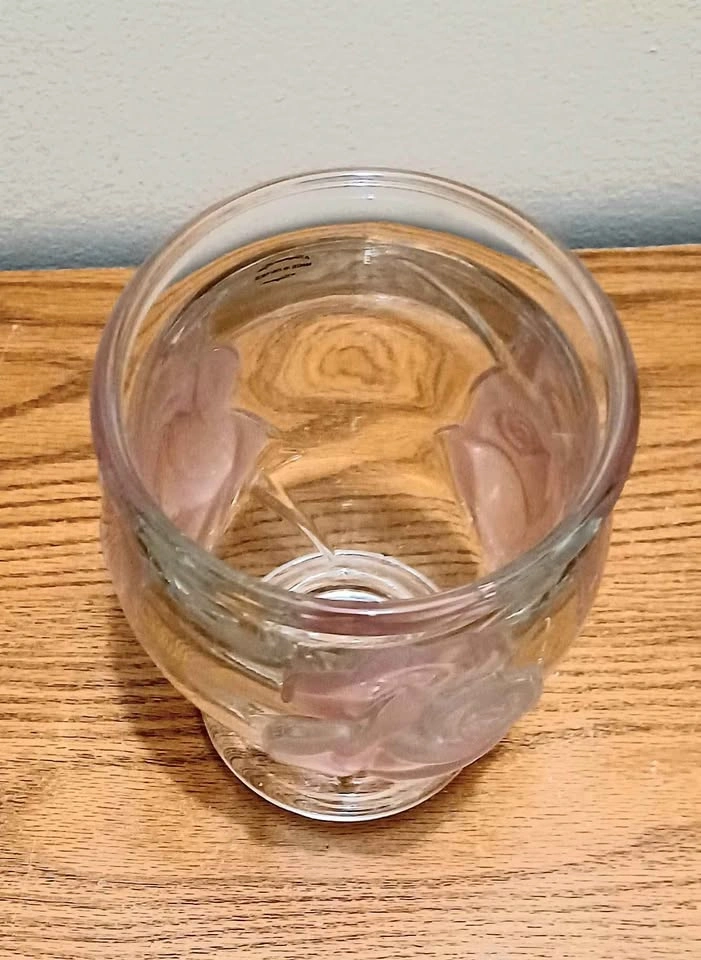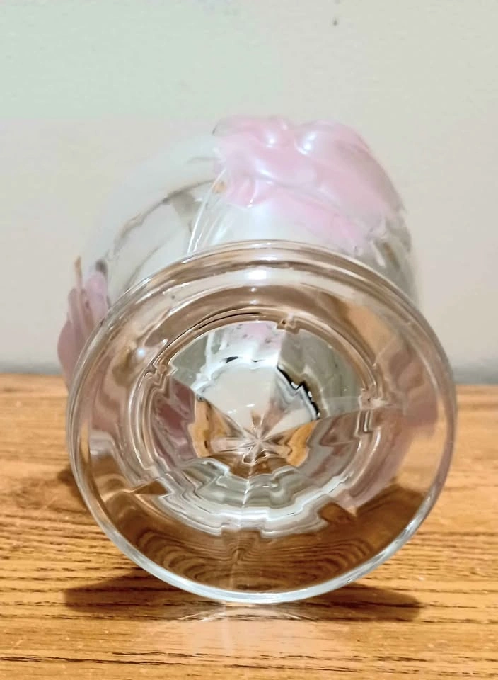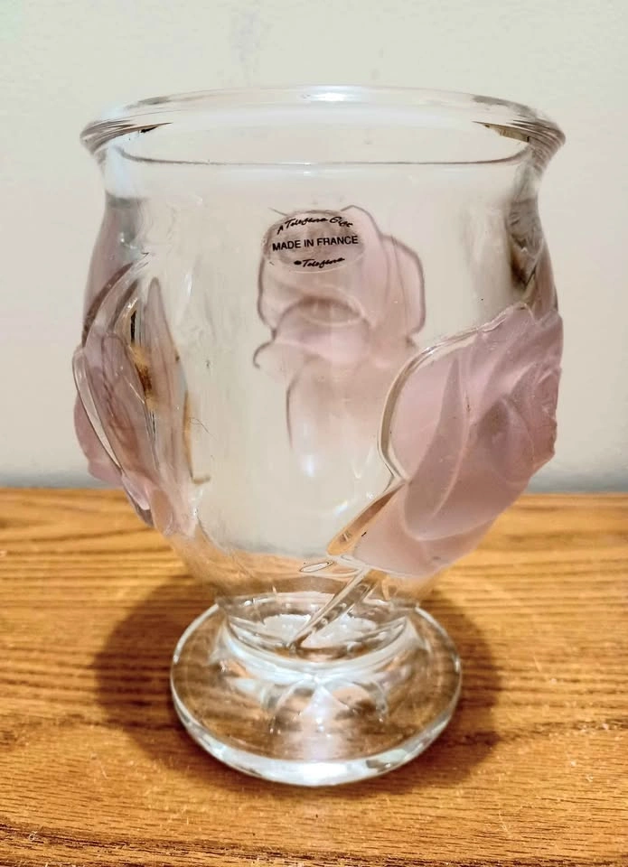 65Vintage, Floral French Crystal, Glass Art Teleflora Frosted Raised Pink Flowers Height : 16 cm Excellent Condition, with Sticker Please check out my other rare collectibles!
