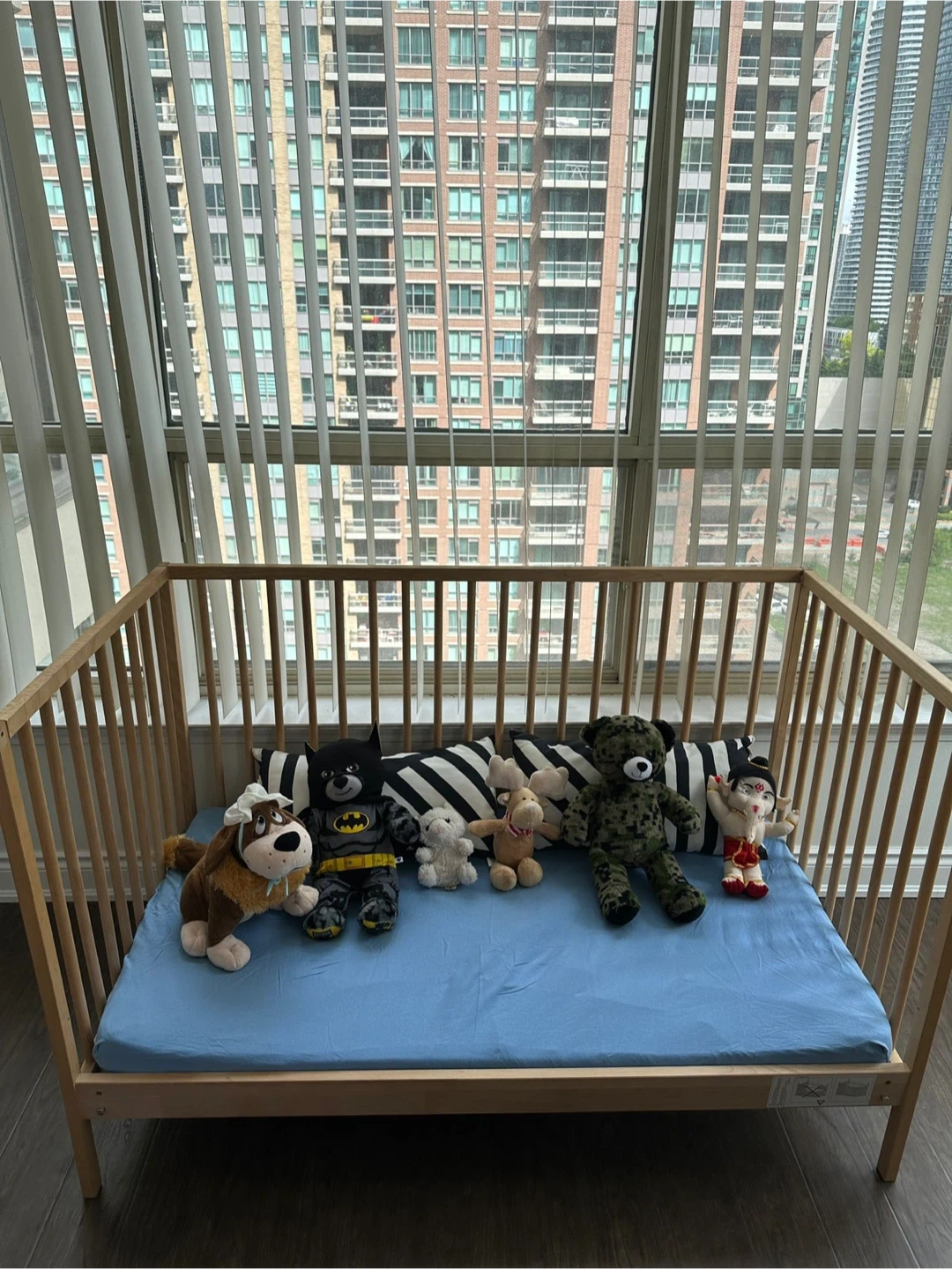 Selling a wooden baby crib in great condition! Mattress is also new with fitted protectors. Perfect for your little one's nursery. It has a simple and sturdy design.