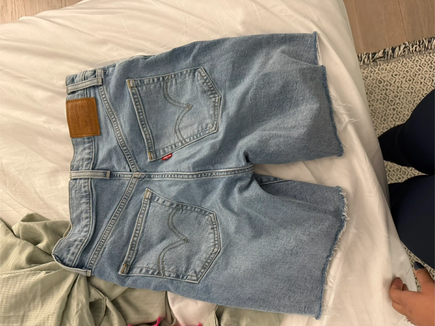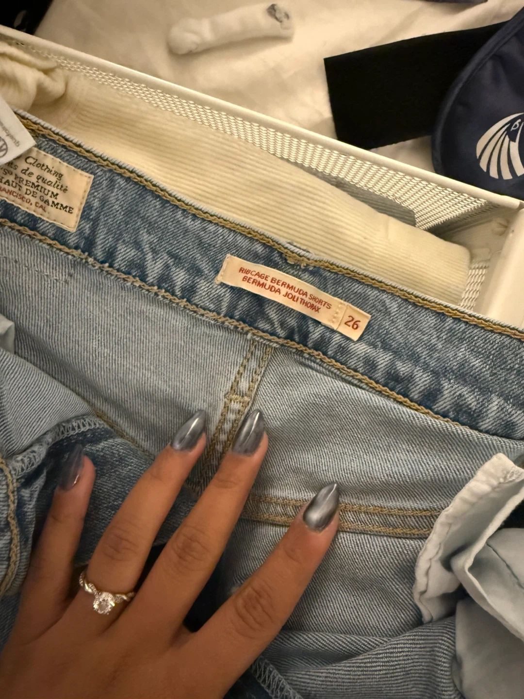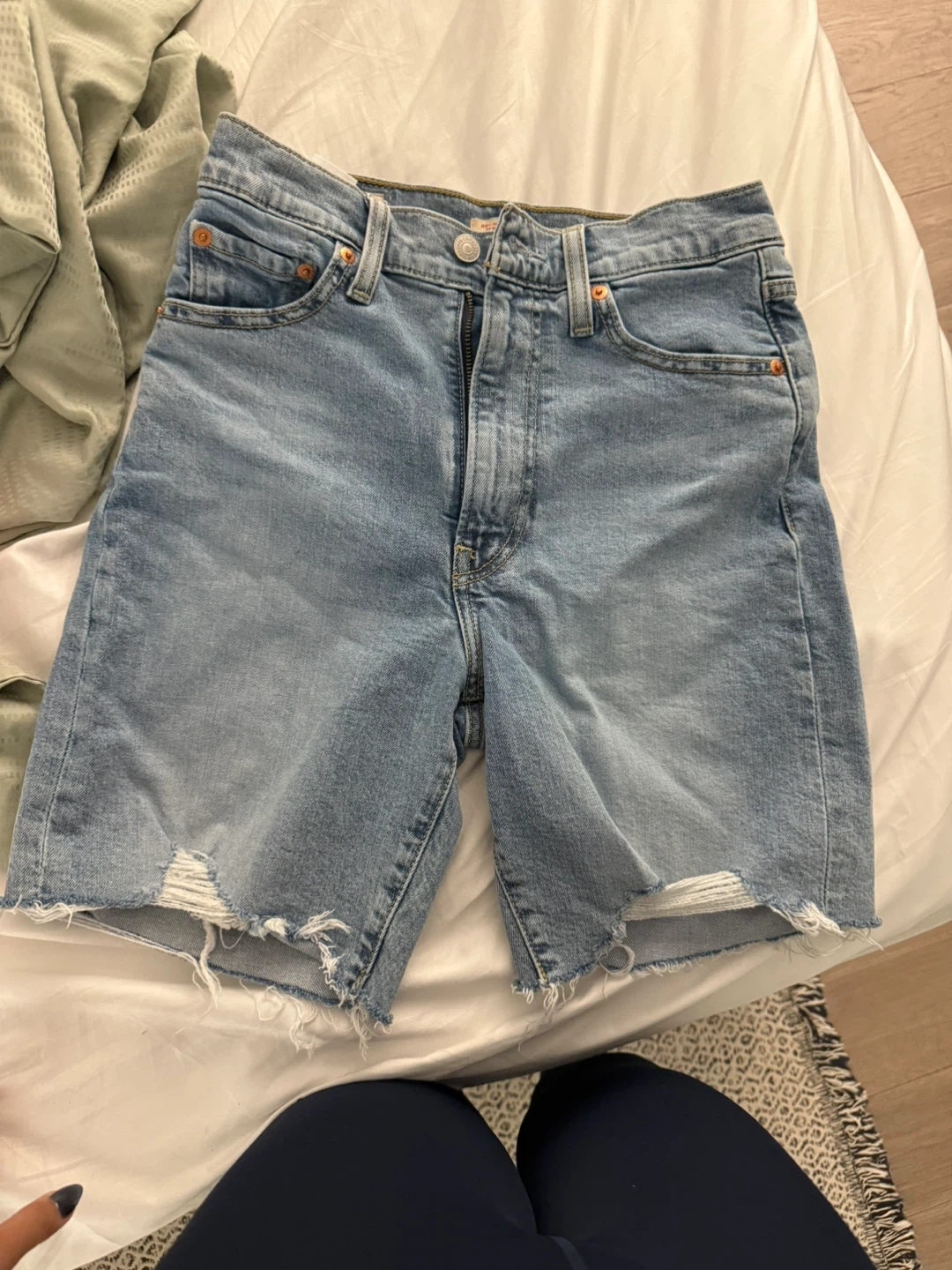 177Levi's Ribcage Bermuda Shorts in a size 26. These denim shorts are perfect for a casual, stylish look. They're in great condition and ready for a new home! Wore only once