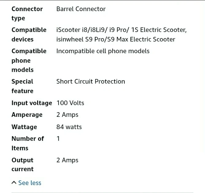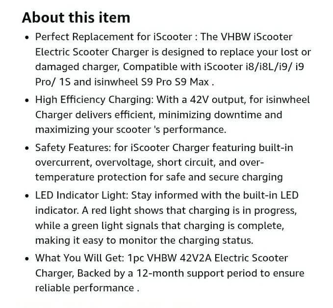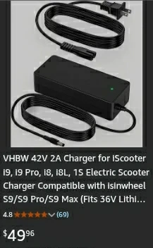 Selling a BNIB Electric Scooter Charger. It supports input of 100-240V ~2A Max at 50/60Hz and output of 42V == 2A. It comes with the box. It serves as a replacement charger for the following brand and models screenshots in one of the pictures above.