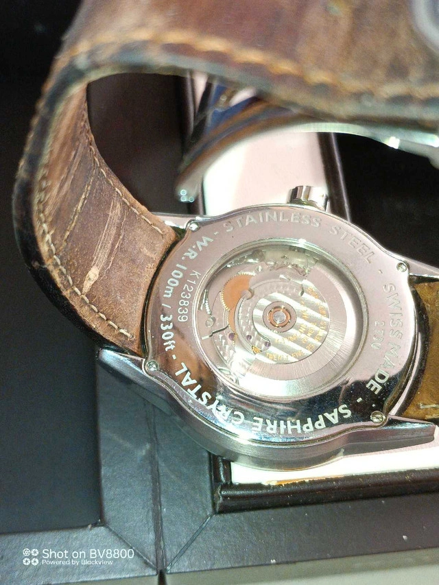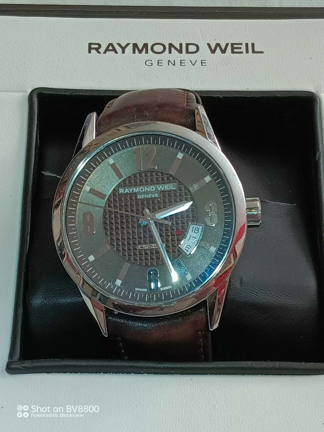 25This Raymond Weil watch features a stainless steel case, sapphire crystal, and a brown leather strap, blending durability with classic style. The watch shows signs of wear on the strap, indicating it's been a faithful companion on various adventures. Specifications: * Brand: Raymond Weil * Case Material: Stainless Steel * Crystal: Sapphire * Strap: Brown Leather * Water Resistance: 100m / 330ft Watches, like old friends, tell stories. While this one isn't brand new, it has character! If the ad is up, yes, it's still available!
