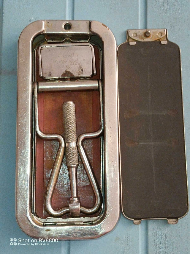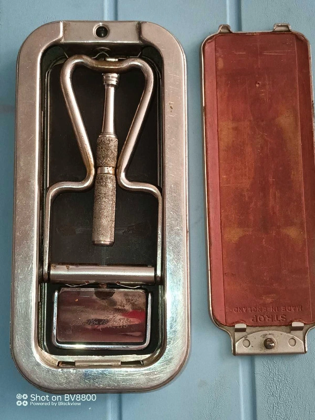 25Check out this vintage straight razor strop and case, a fantastic piece for collectors or those who appreciate classic grooming tools. This item, showing its age, is a unique find. The strop is marked "Strop - Made in England". While it carries the charm of yesteryear and displays signs of use, it remains a functional piece of history. Finding comparable listings is tough, making it a rare find! Offers around $40 seem fair, given its vintage and condition. If the ad's up, it's up for grabs, ready to find a new home!