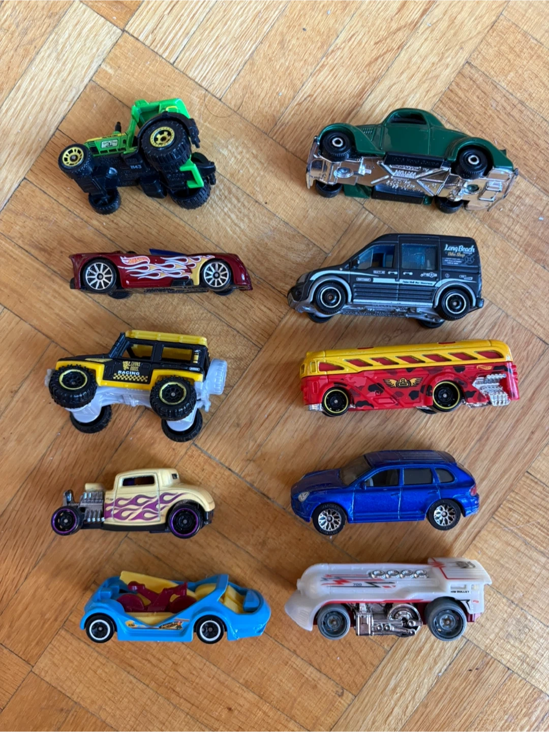 Selling a collection of Hot Wheels Cars. There are 10 cars in total, all with unique designs and details. Perfect for collectors or kids who love playing with toy cars.