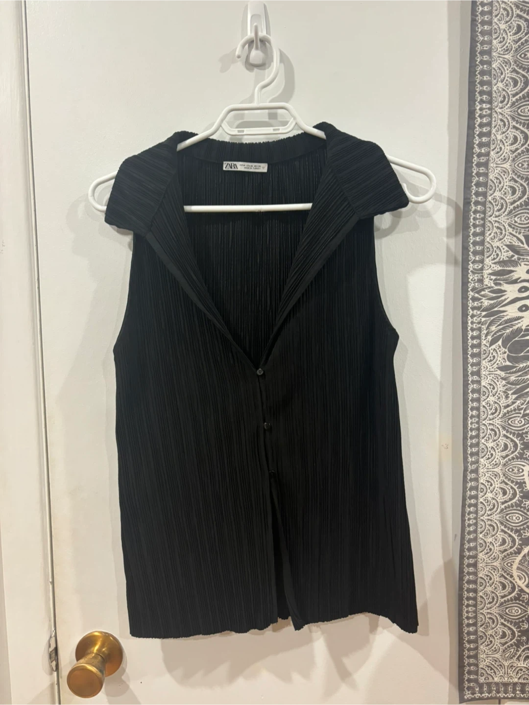 15Selling a Zara black pleated sleeveless top in size M. new without tags