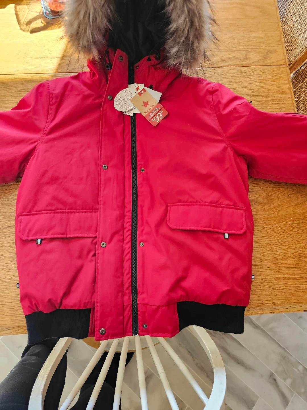 A warm and stylish red winter jacket from Canadiana girls size L/G or a ladies XS. Great for the cold Canadian winters!