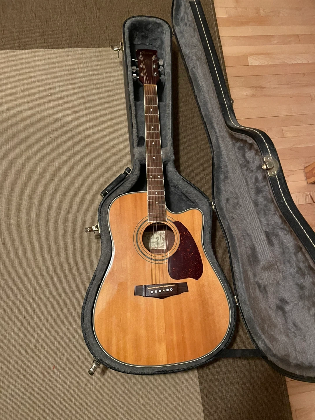 Selling an Ibanez PF60SCE-NT acoustic-(with electric pickup ) . It's in good condition and comes with a case. Great for beginners or experienced players alike! Small ding on left head stock and one string pin could use replacement ( very minor)
