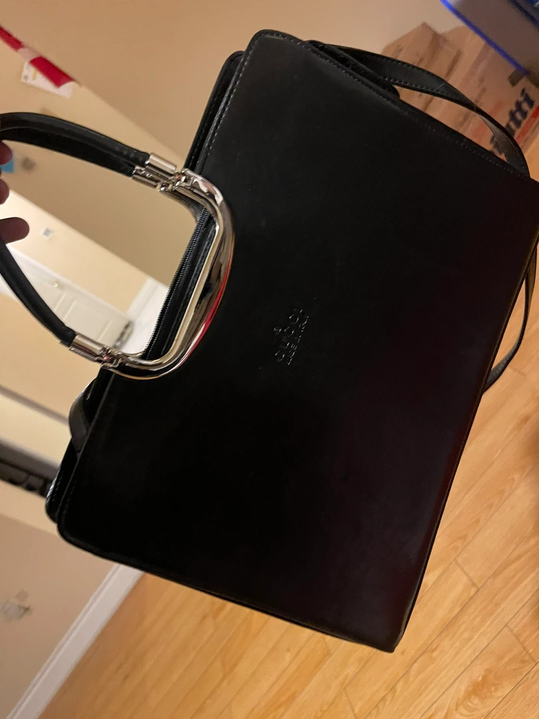 10Here's a stylish Gucci handbag in classic black leather. It's in good condition and ready for a new home!