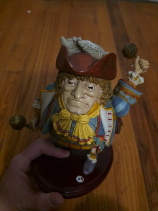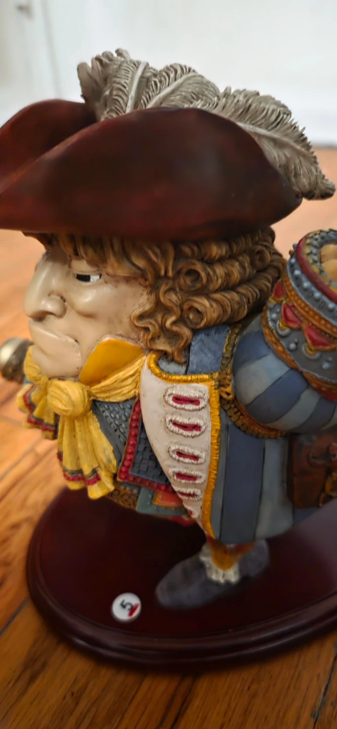 Selling a vintage Border Fine Arts figurine. It's a unique piece with detailed craftsmanship. The figurine features a character in a historical costume with a feathered hat and decorative attire. It's a great addition for collectors or anyone who appreciates fine art pieces