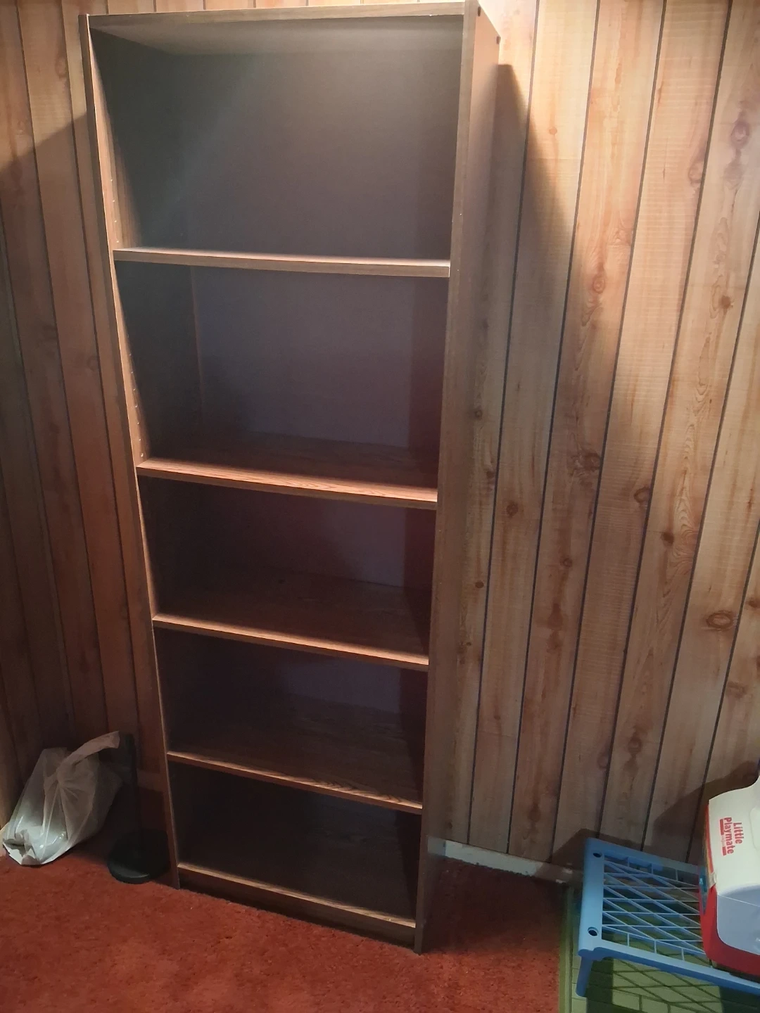 Selling a tall bookshelf, perfect for storing books or displaying items. It has multiple shelves and is in good condition. 24 × 71 inches