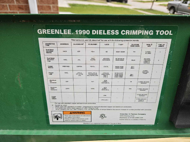 1 / 31 / 3Buy & SellHydraulic dieless CrimperHydraulic dieless Crimper$750Greenlee dieless hydraulic crimper in good working condition. Serious inquiries only please.WHERE TO MEETCheck LocationView MapSELLERMJMeadowvale211 review0 chats·0 favorites·14 viewsSEND CHAT TO SELLERHi MJ! I’m interested in your listing.Hi MJ! I’m interested in your listing.Get the Karrot app to chatSign In to chat