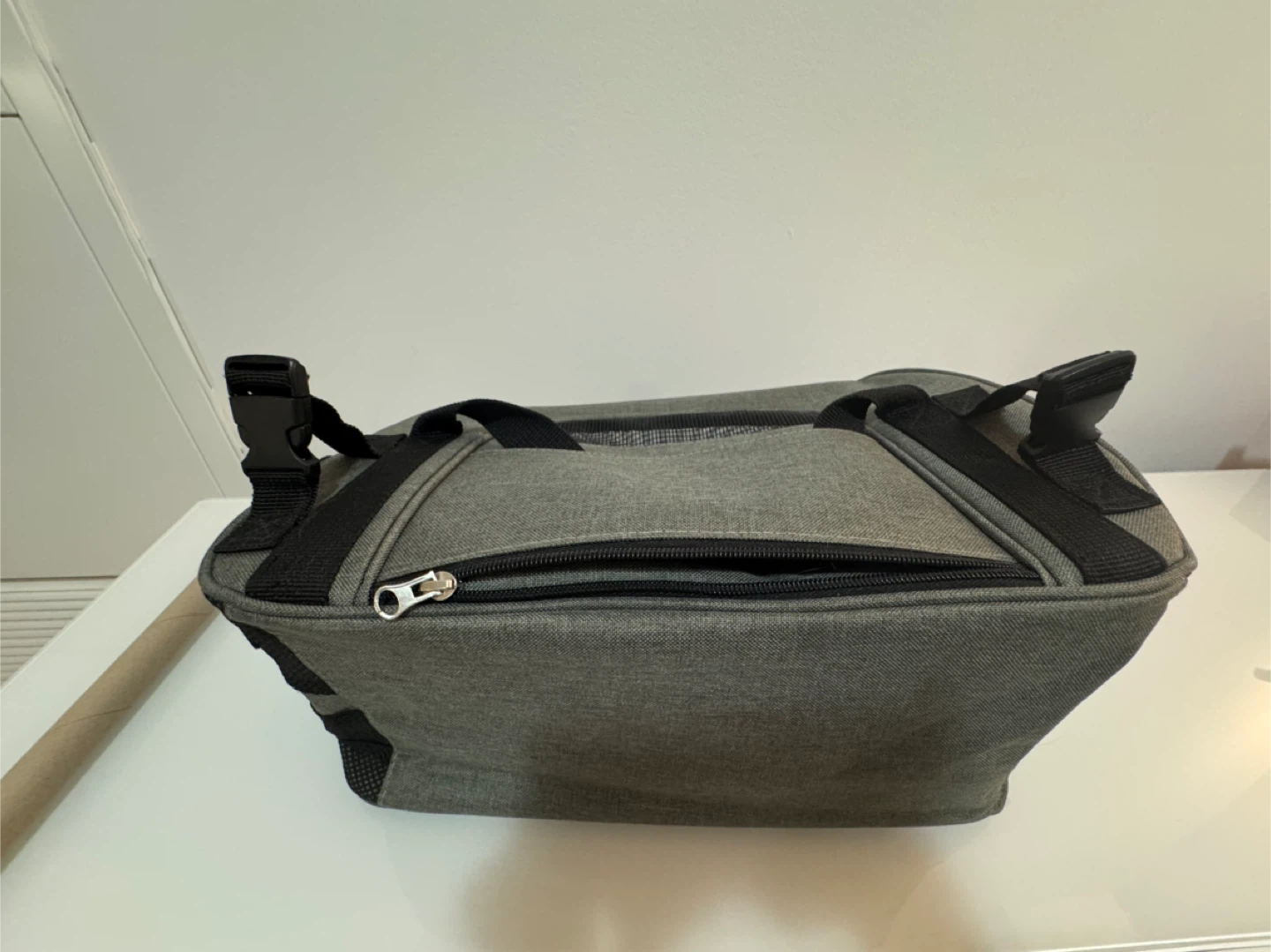 4. Big side pocket closed with Velcro. Should strap attachment. Full zippered opening for pet.