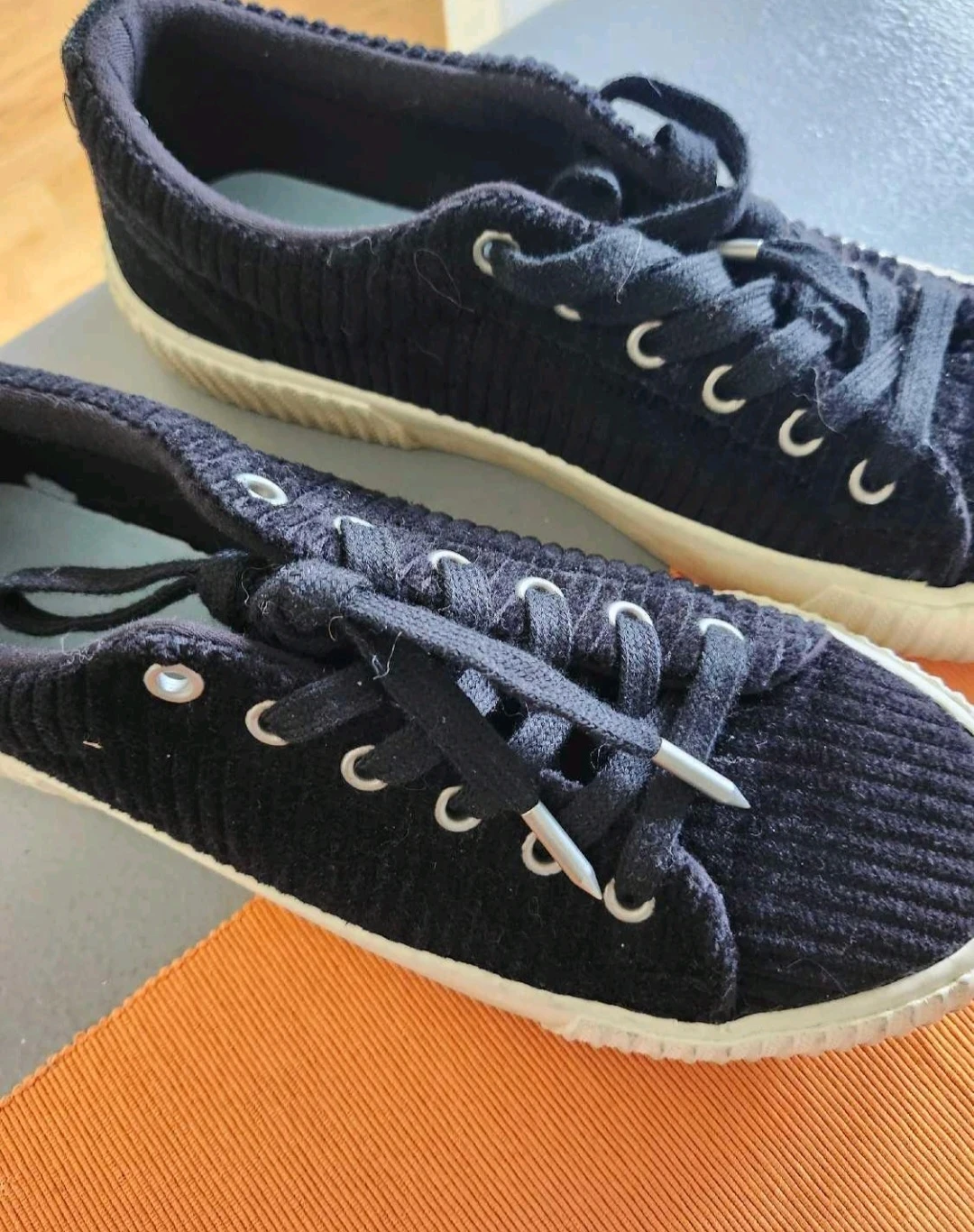 Selling a pair of black corduroy sneakers. They are in great condition and would be great for everyday wear!