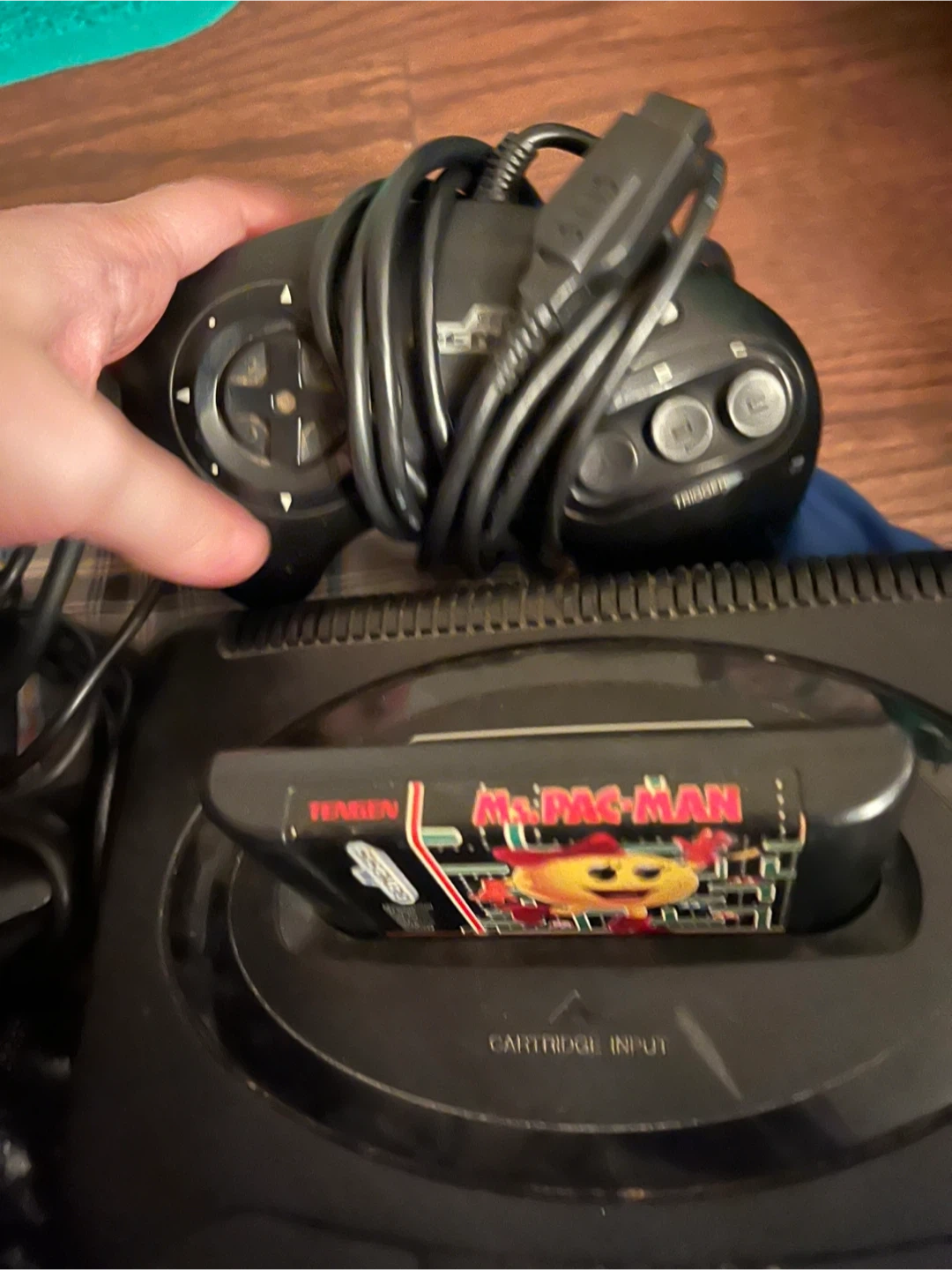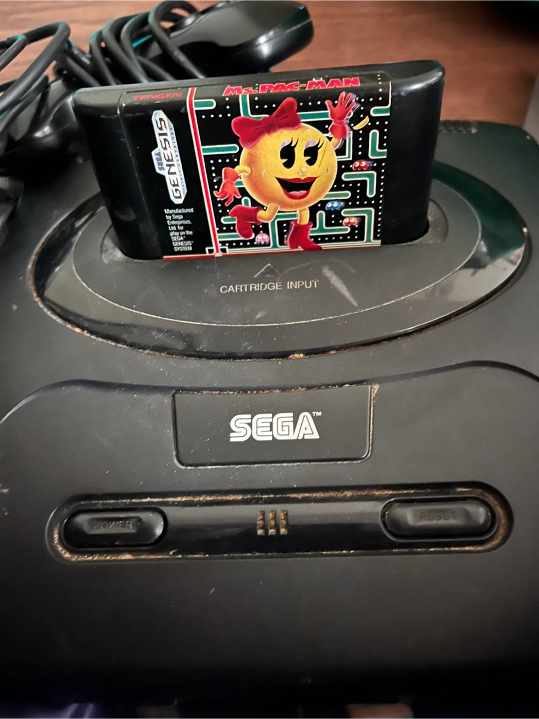 115Selling a used Sega Genesis console. It comes with one controller, the power adapter, and the Ms. Pac-Man game cartridge. Ready for some retro gaming fun!