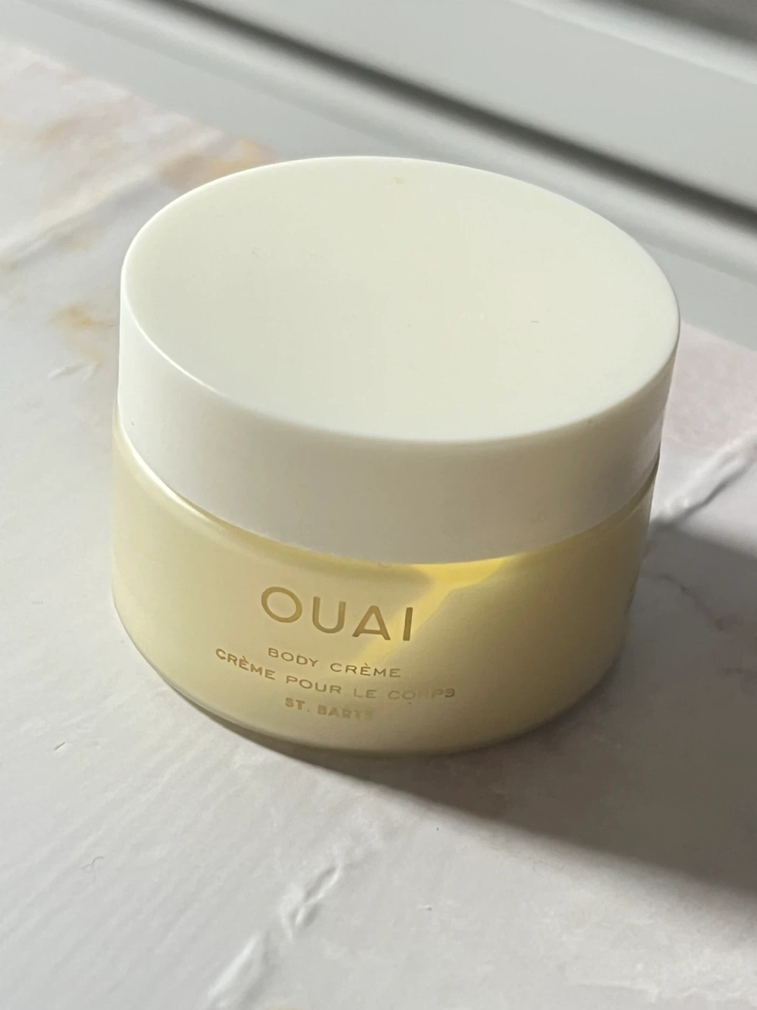 100Full, Never open 30g / 1oz Selling a jar of OUAI Body Crème in the St. Barts scent! This luxurious body cream is perfect for hydrating your skin and leaving it feeling soft and smooth Cash only Pickup only