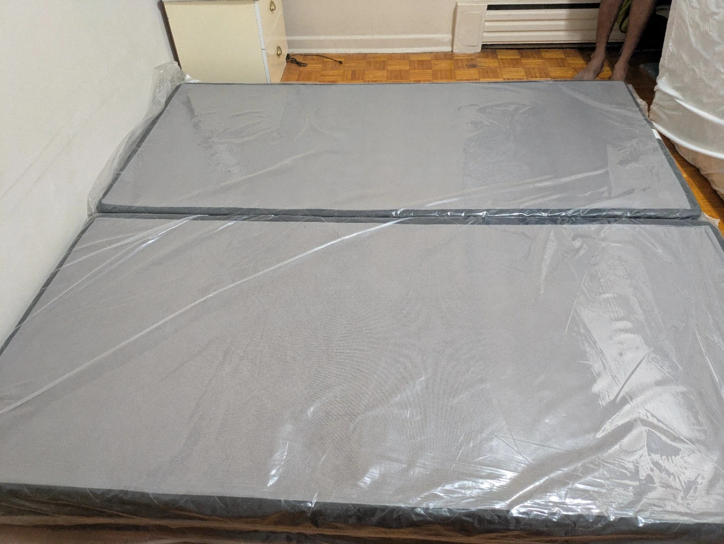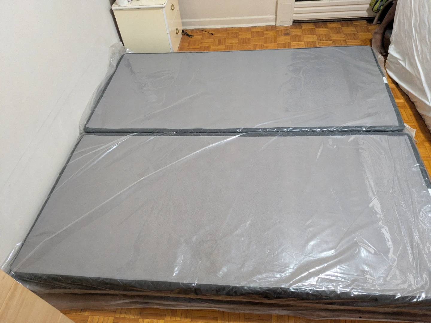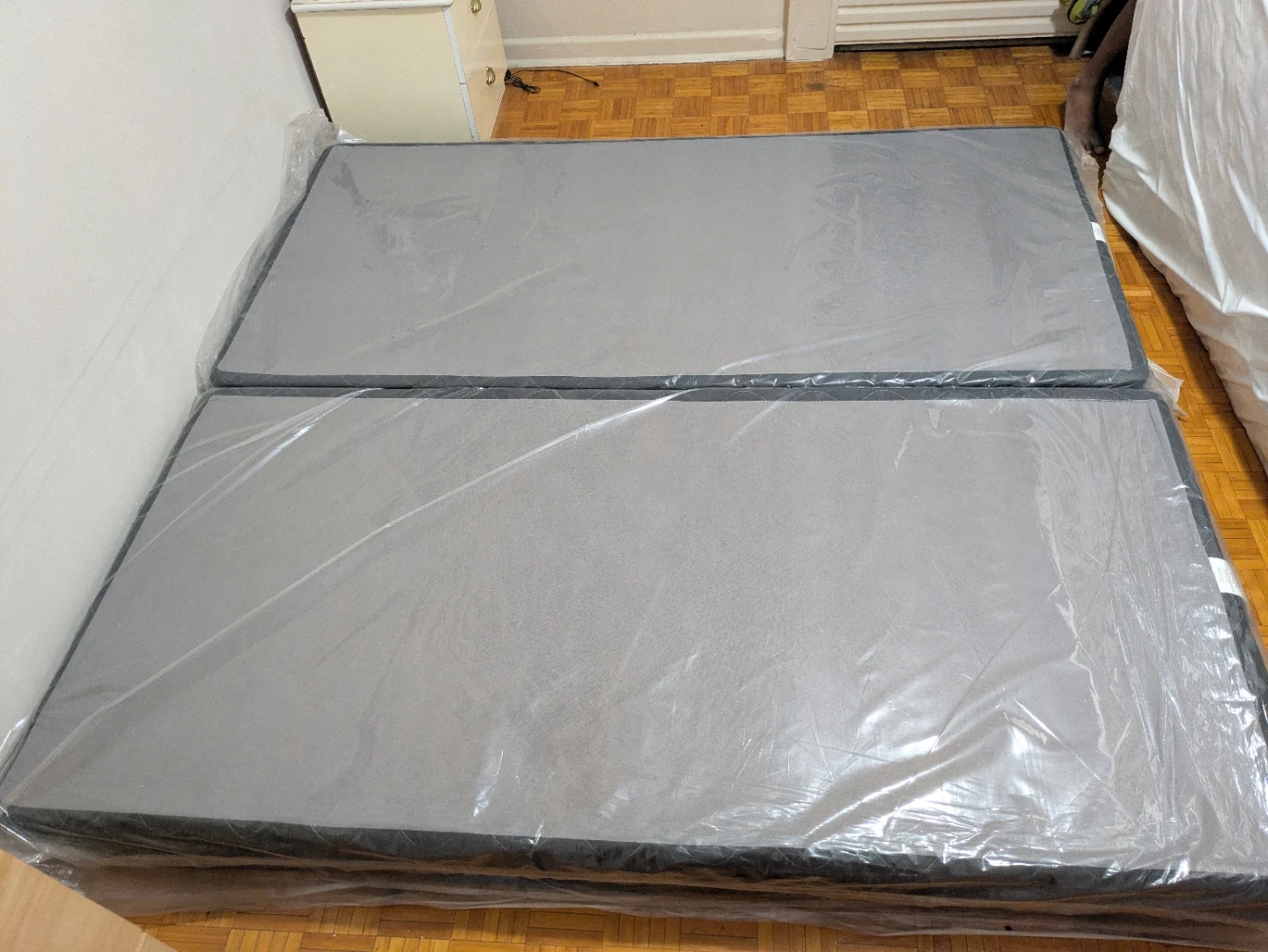Selling two brand new bed frames ( not opened ) along with the tags. It can accommodate a king size bed comfortably.