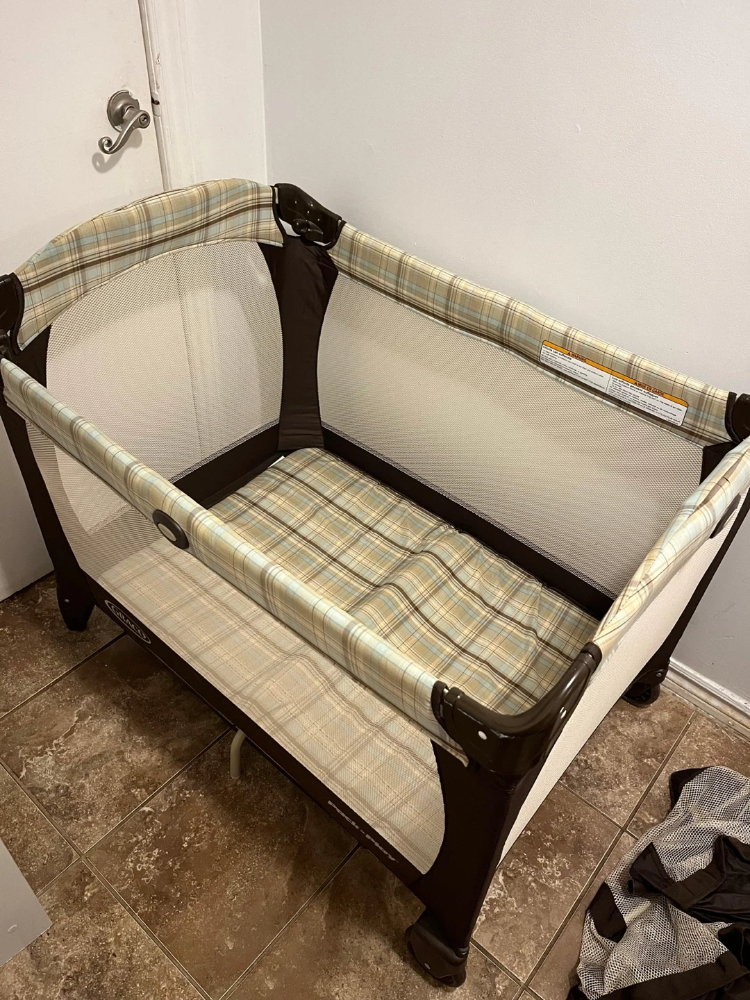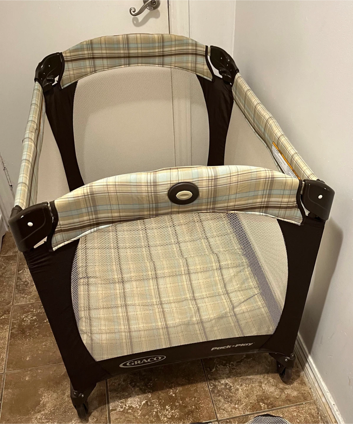 Selling a Graco Pack 'n Play playard in great shape! It's perfect for keeping your little one safe and comfortable, whether at home or on the go. This playard is easy to set up and take down, making it a convenient option for parents. The neutral plaid pattern blends well with any decor.