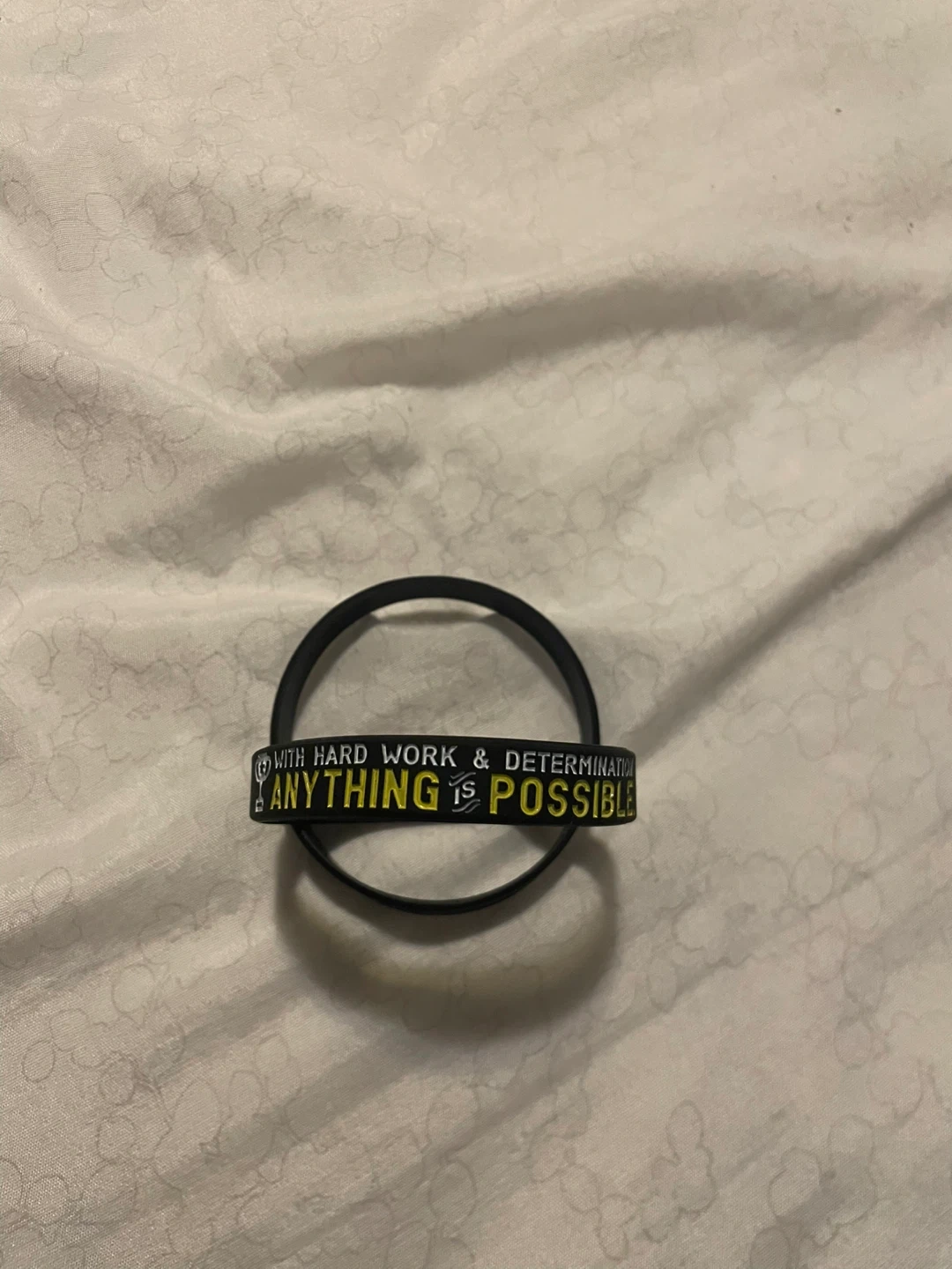 68Selling a set of two motivational rubber wristbands! One says "The Harder the Battle. The Sweeter the Victory" with a basketball image, and the other says "With Hard Work & Determination Anything is Possible" 5 dollars for both or 3 dollars each both are brand new and good condition