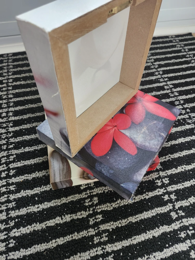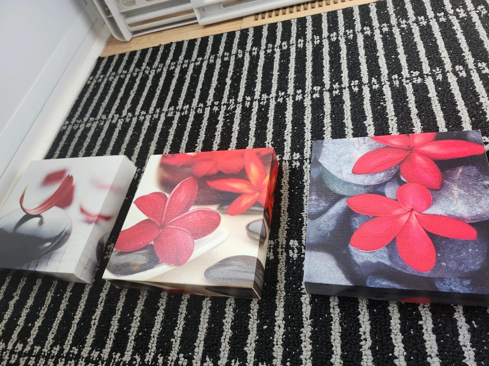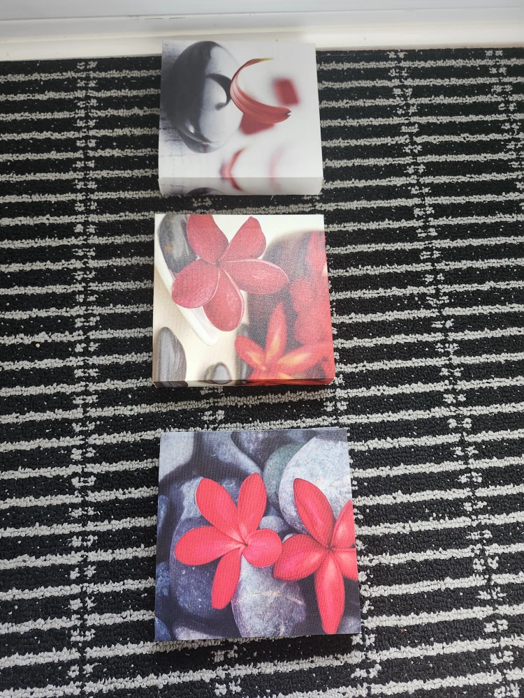 Selling a set of three canvas prints featuring beautiful flower designs. They're in great shape and would add a nice touch to any room!