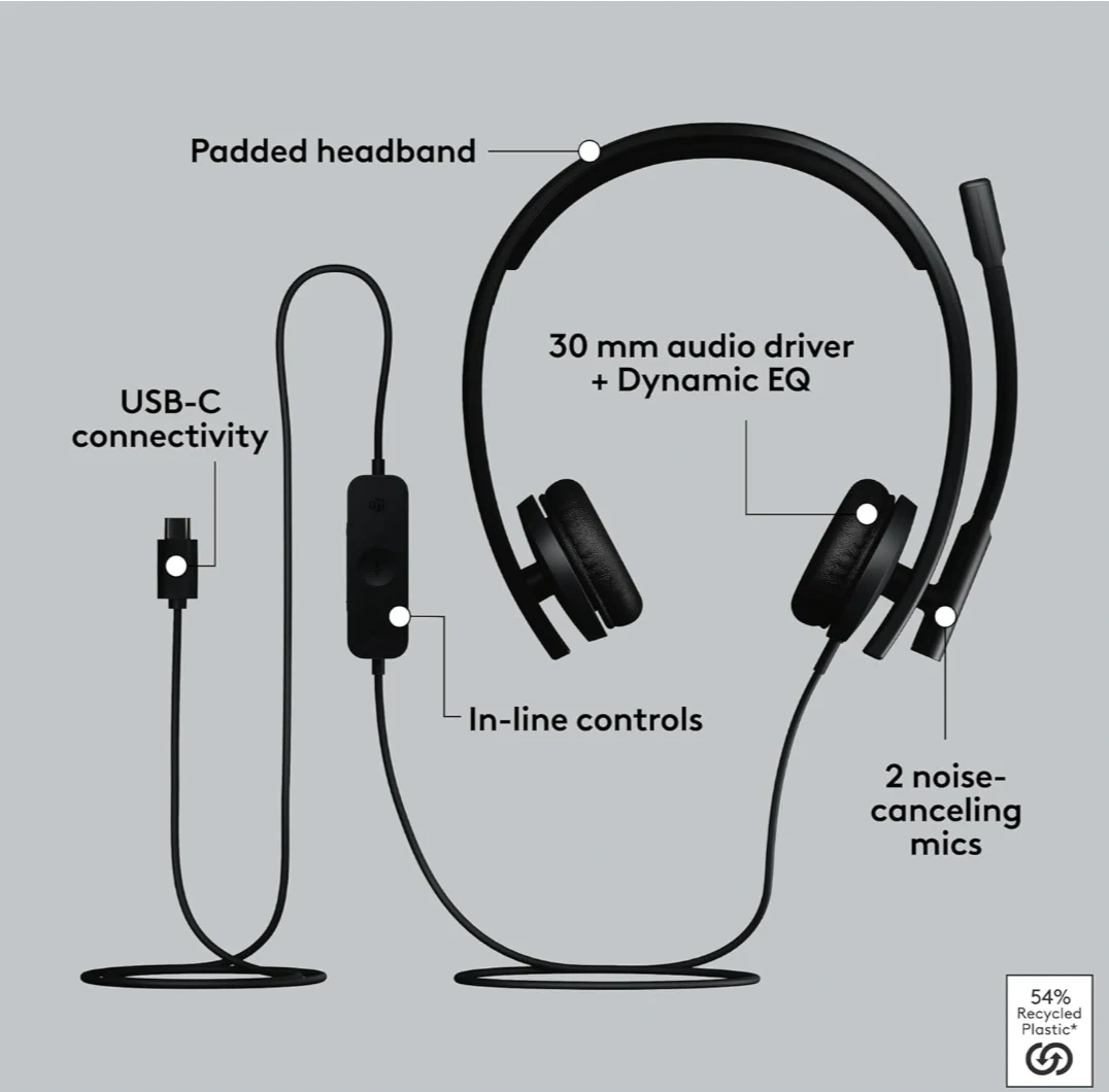 Selling a open box Logitech USB Headset Stereo H570e! It's lightweight and padded for comfort. The headset features inline controls with LED indicators for easy volume adjustment and muting. It's also certified for Microsoft Teams, making it great for business or school. Comes with 2 noise-canceling mics and a 30mm audio driver for better audio near and far. Also comes with the box!