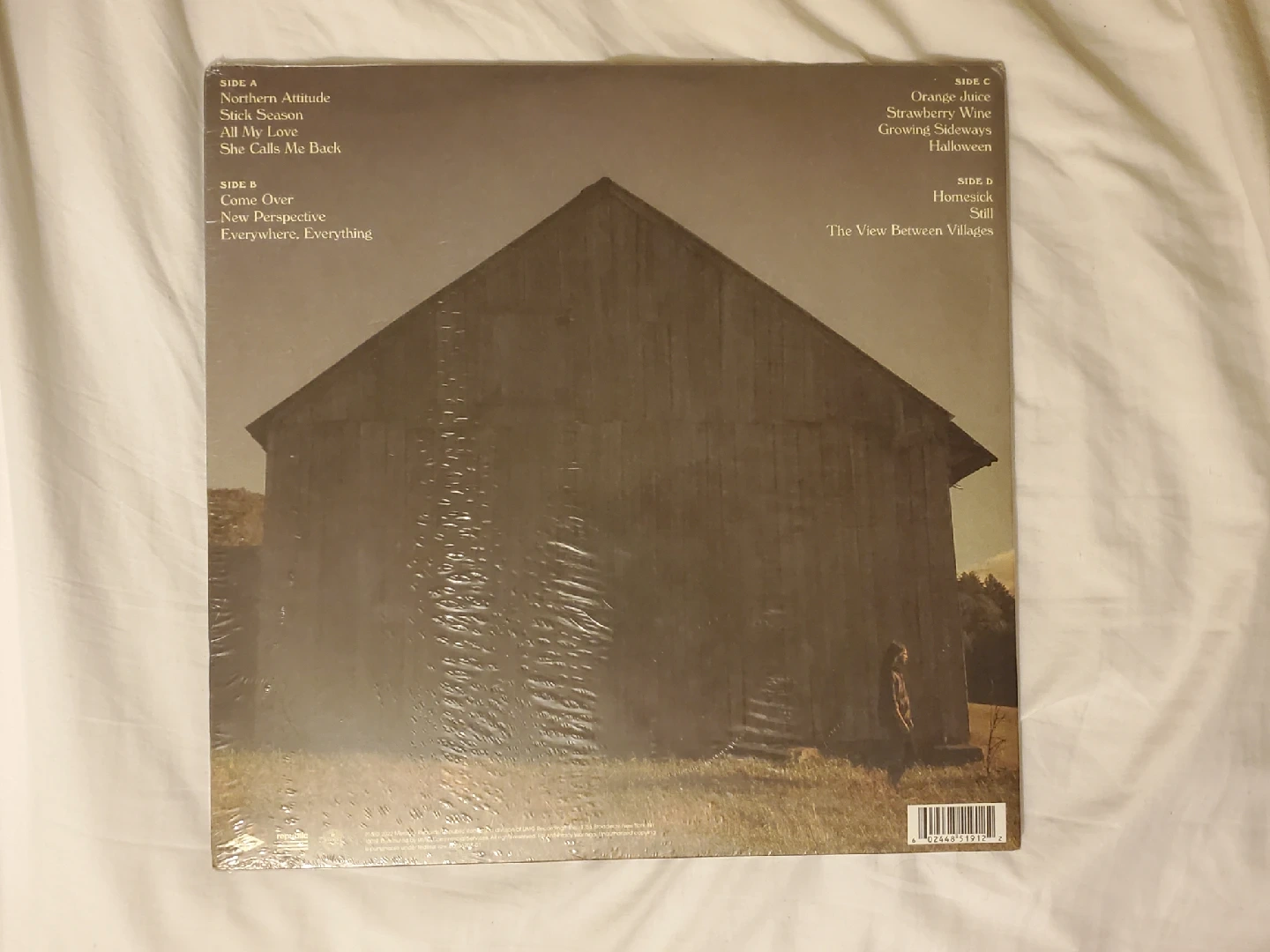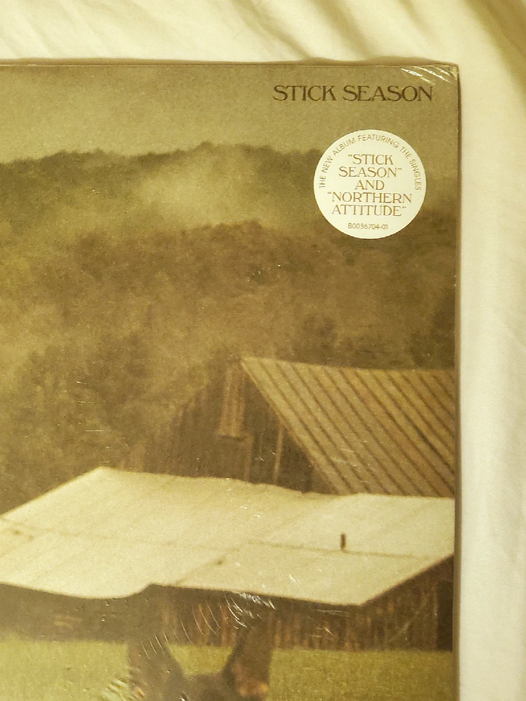 Selling a vinyl copy of Noah Kahan's "Stick Season" album. It's still sealed in its original packaging. The album features the singles "Stick Season" and "Northern Attitude".