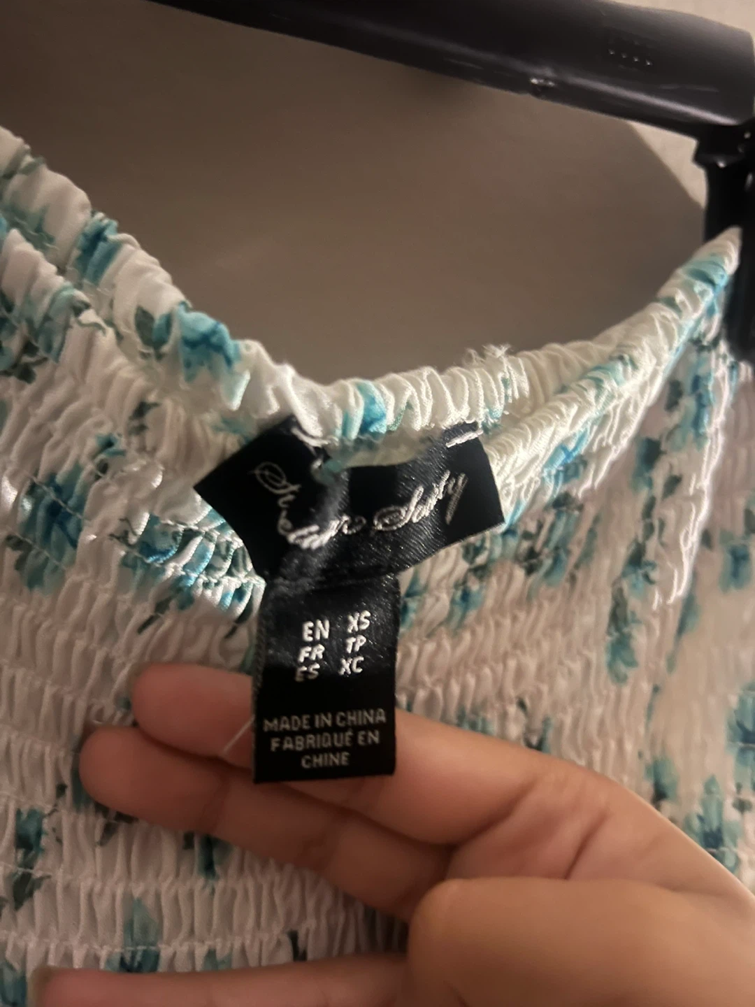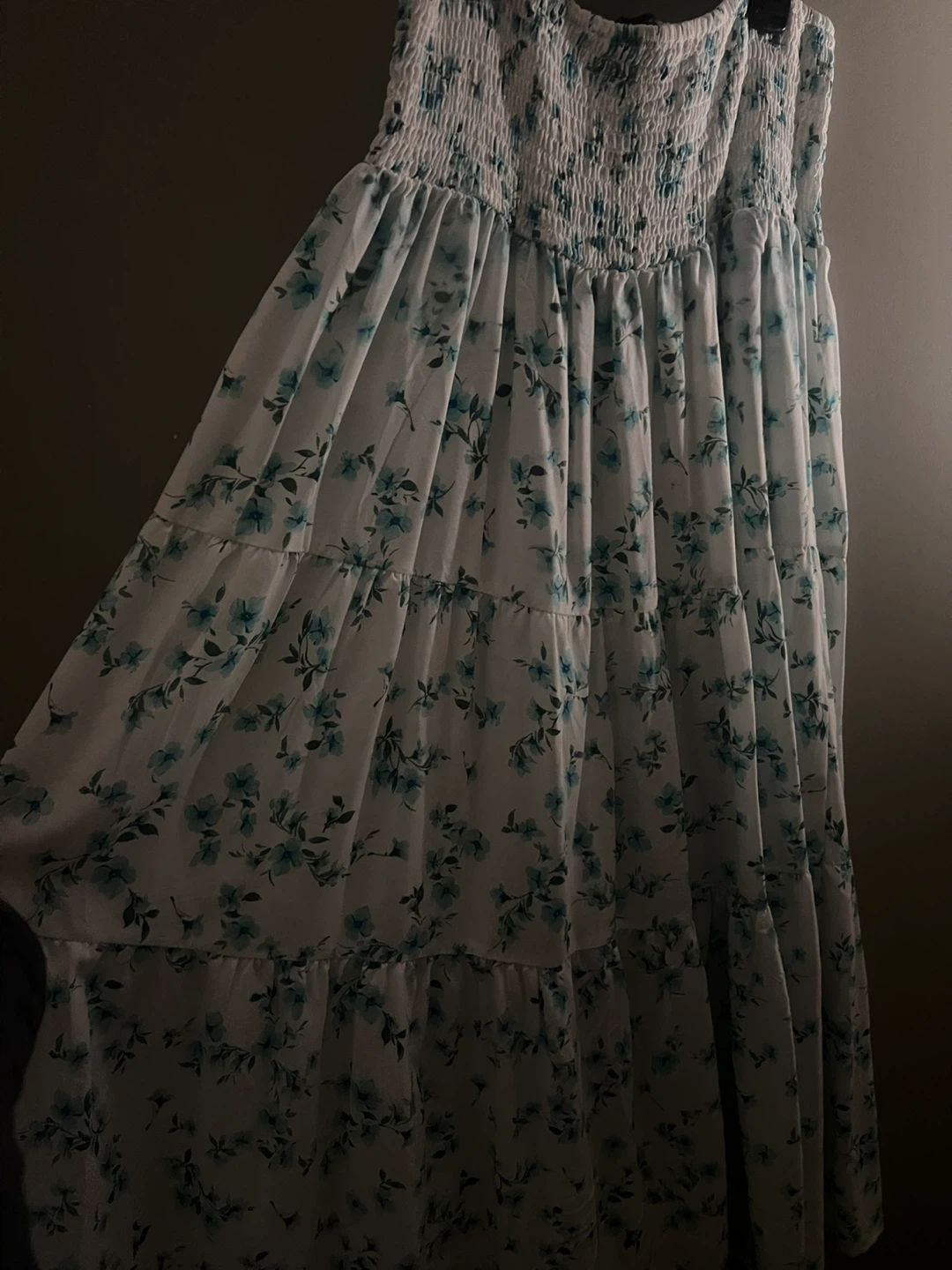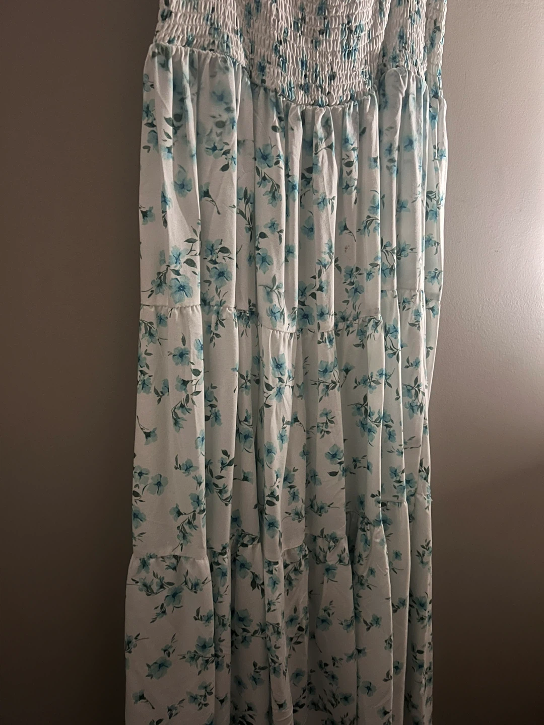 A cute white summer skirt with blue flowers
